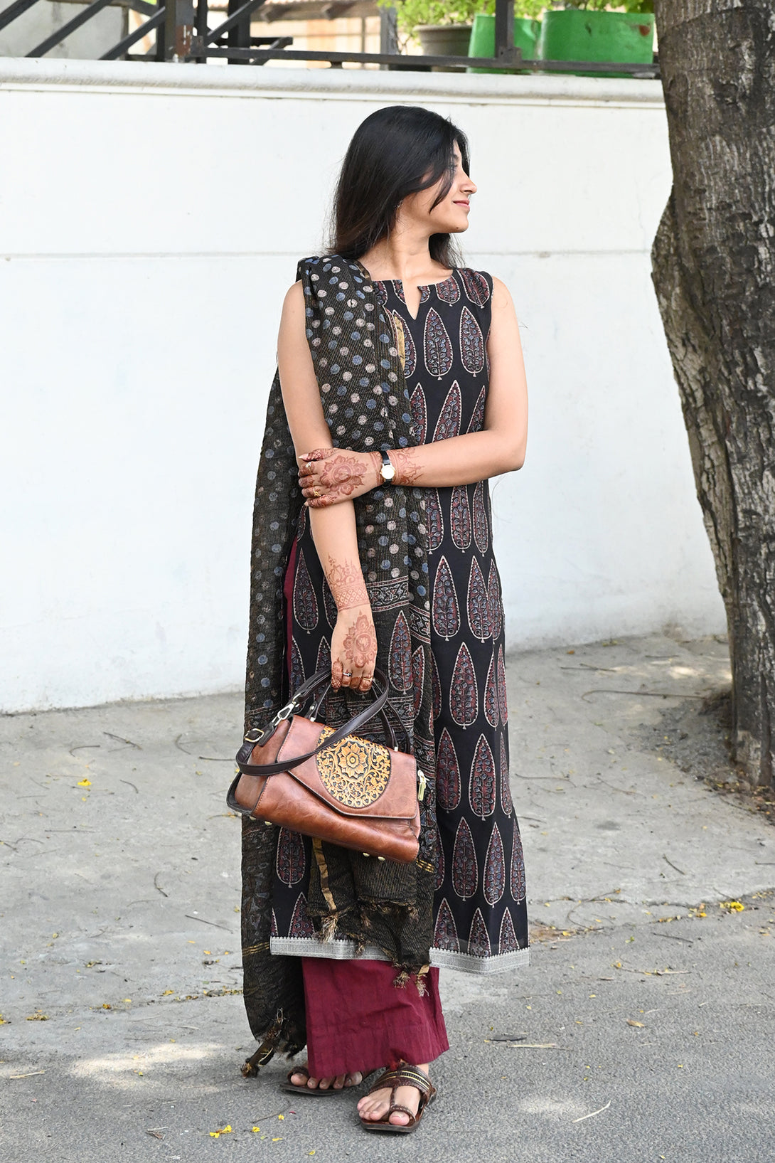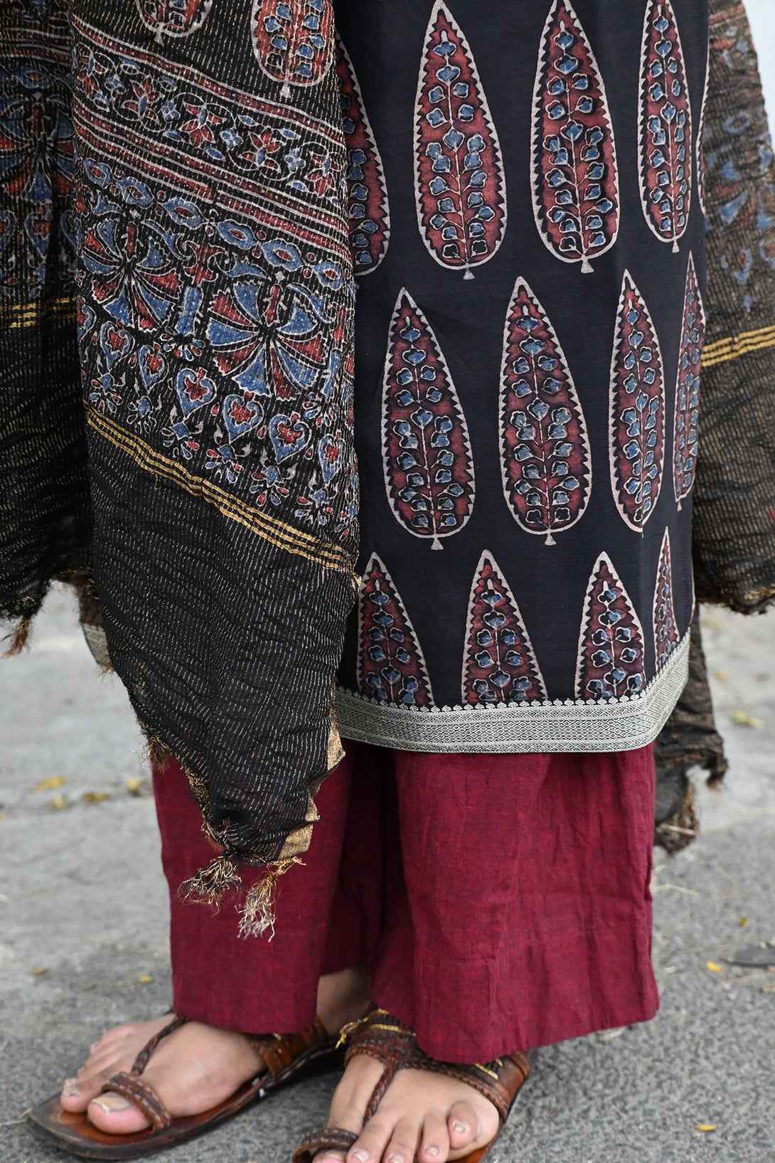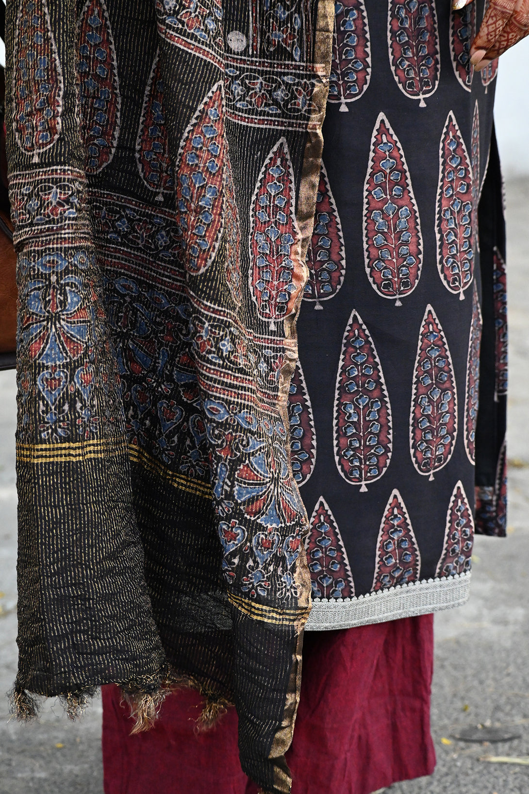 Black Ajrakh Chanderi Top and Dupatta