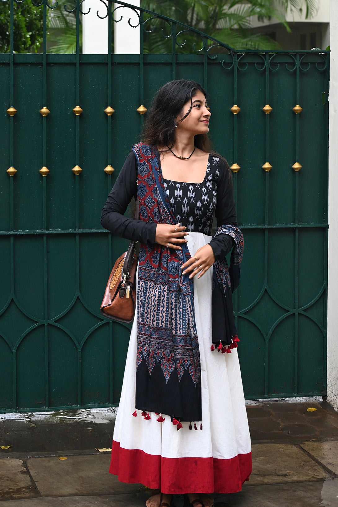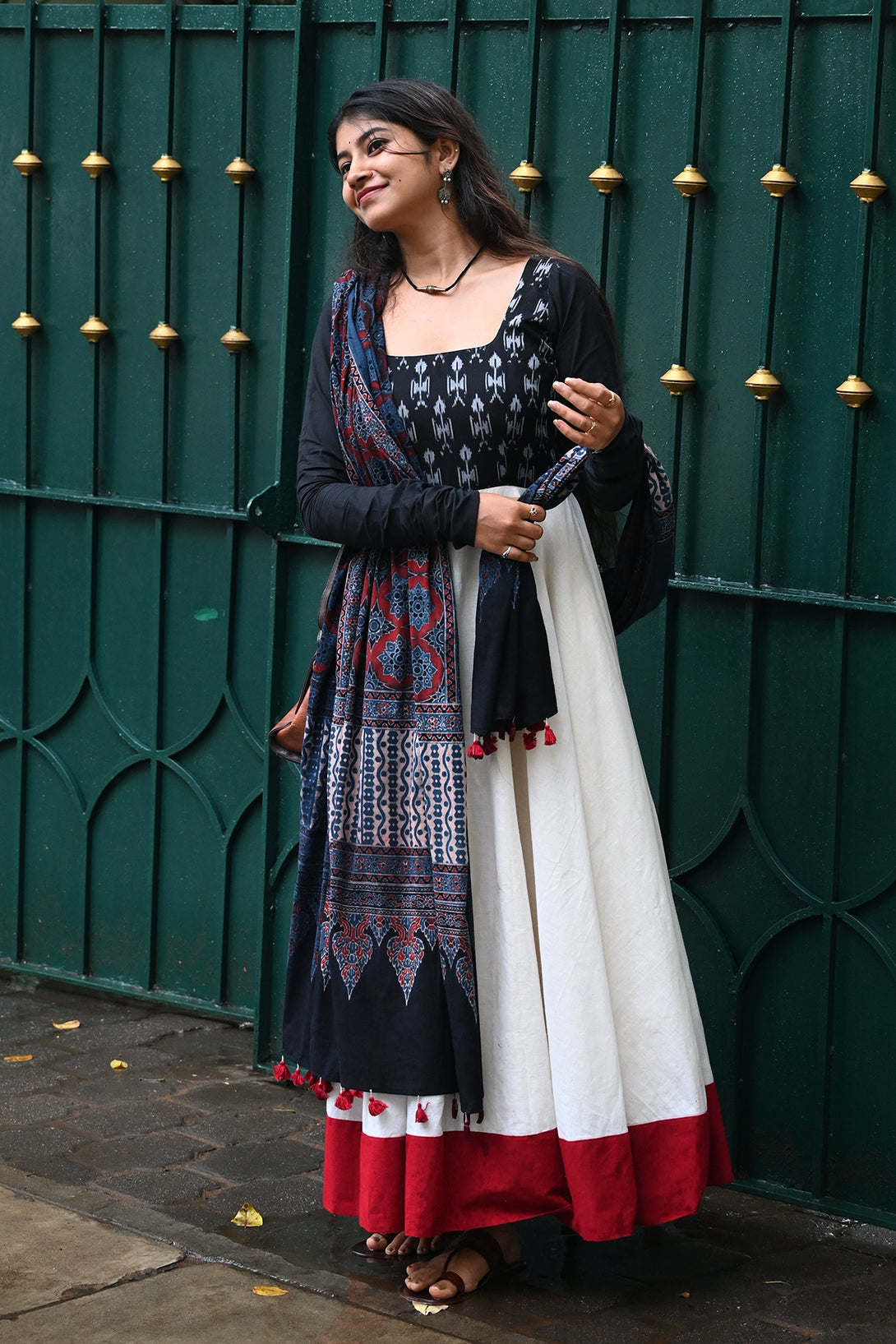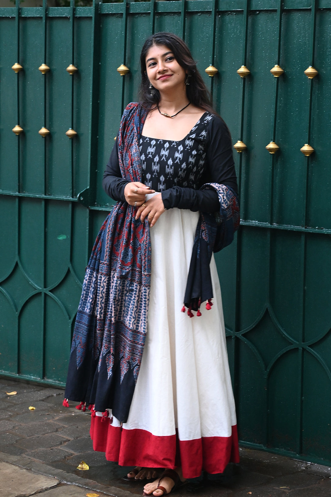 Black and White Anarkali with Kalamkari Dupatta