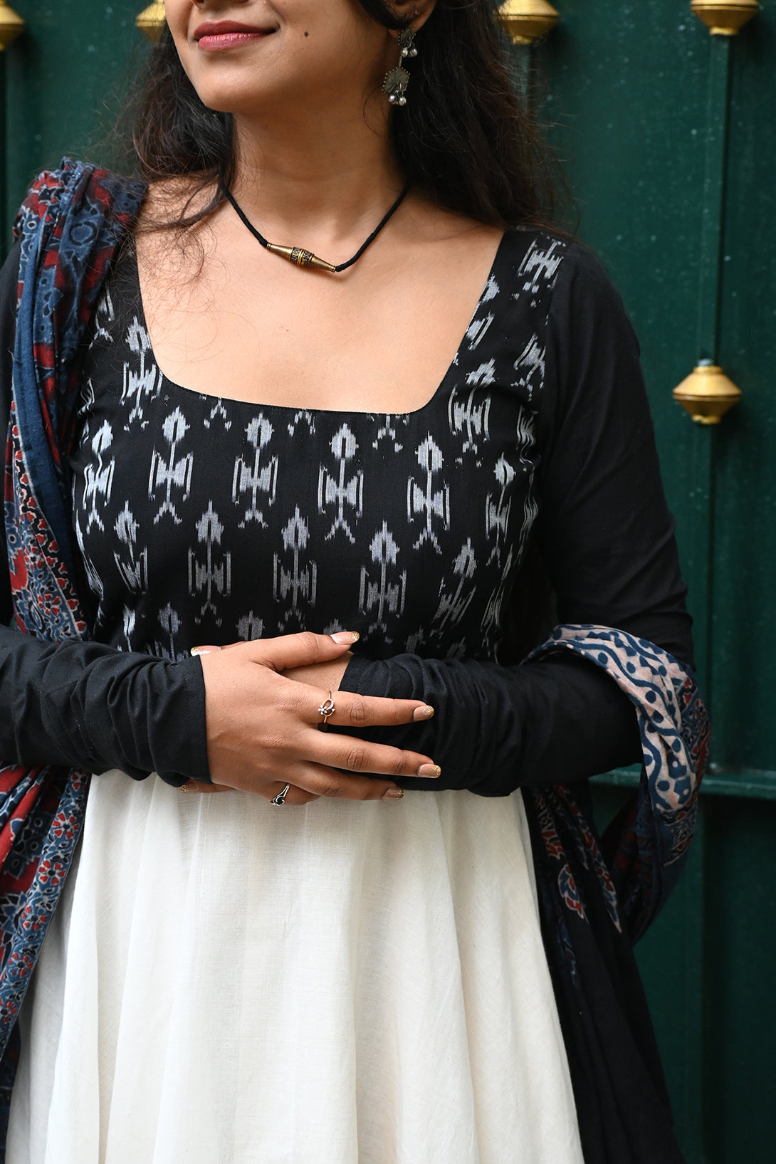 - Fabric: Ikat and handloom cotton