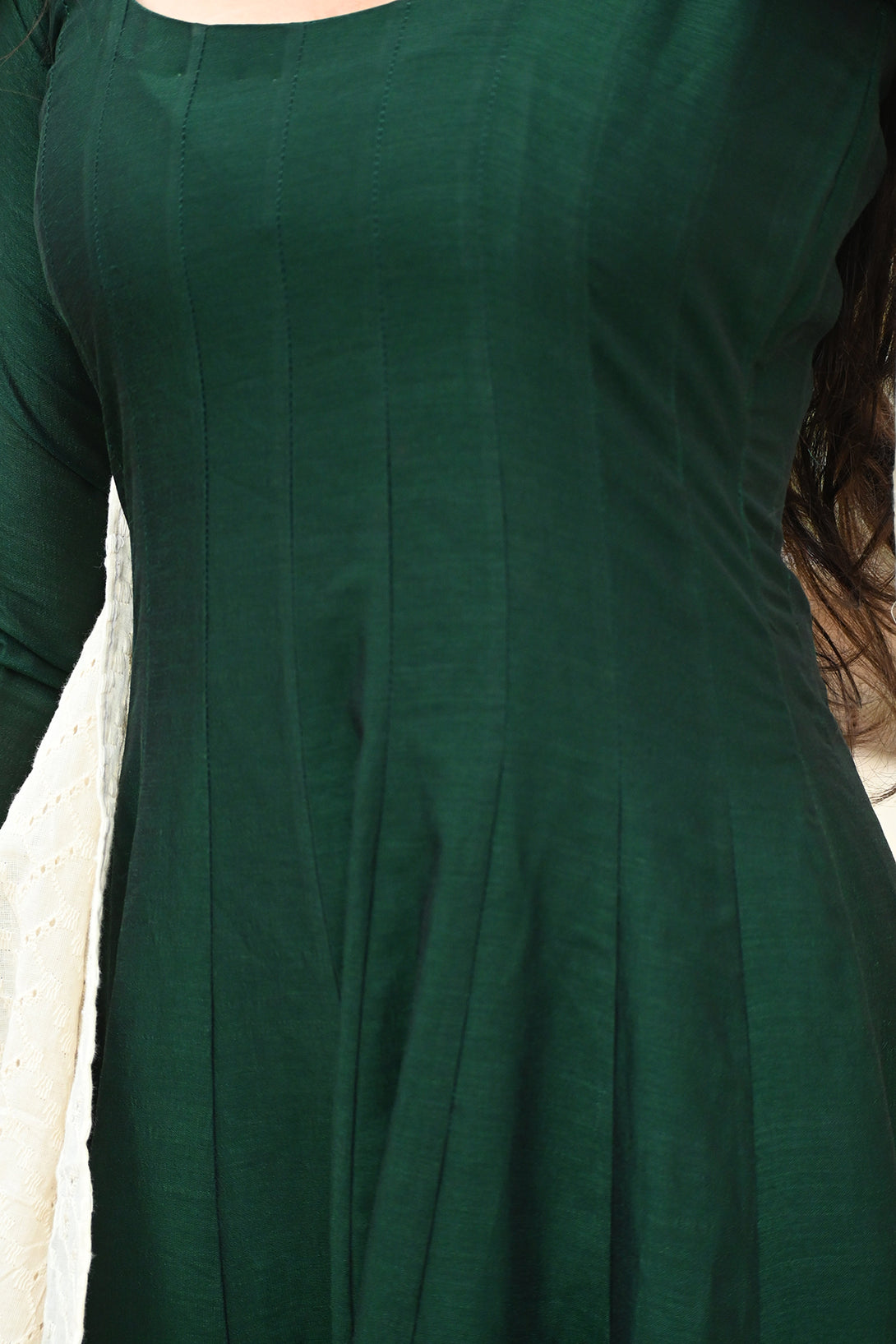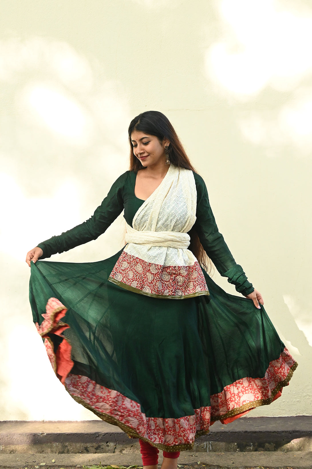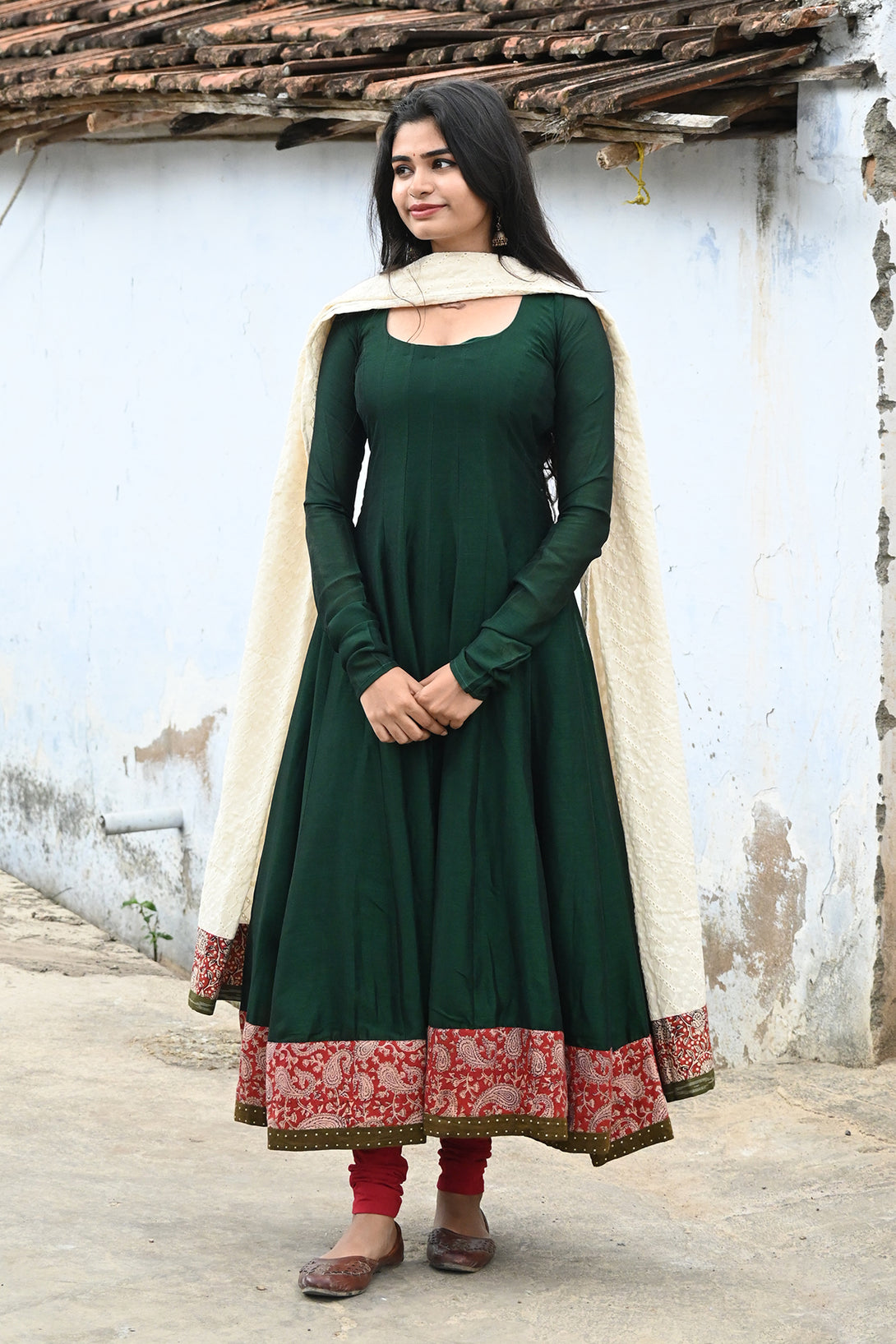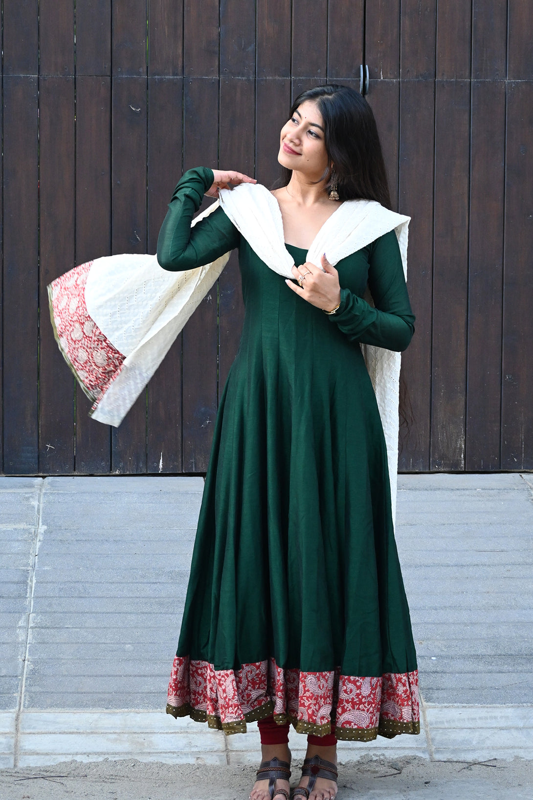 Green Anarkali with Half White Dupatta