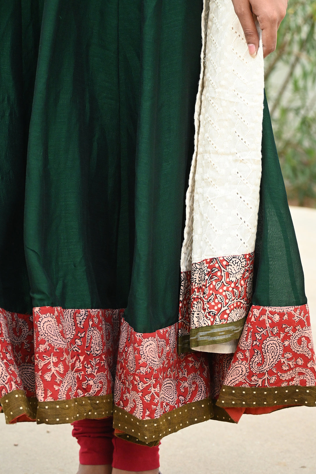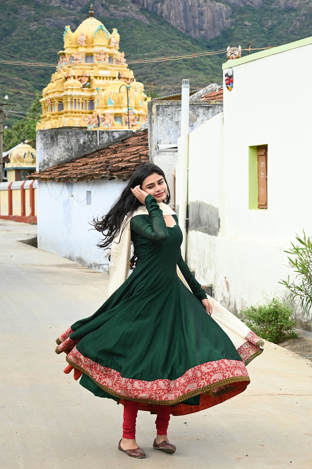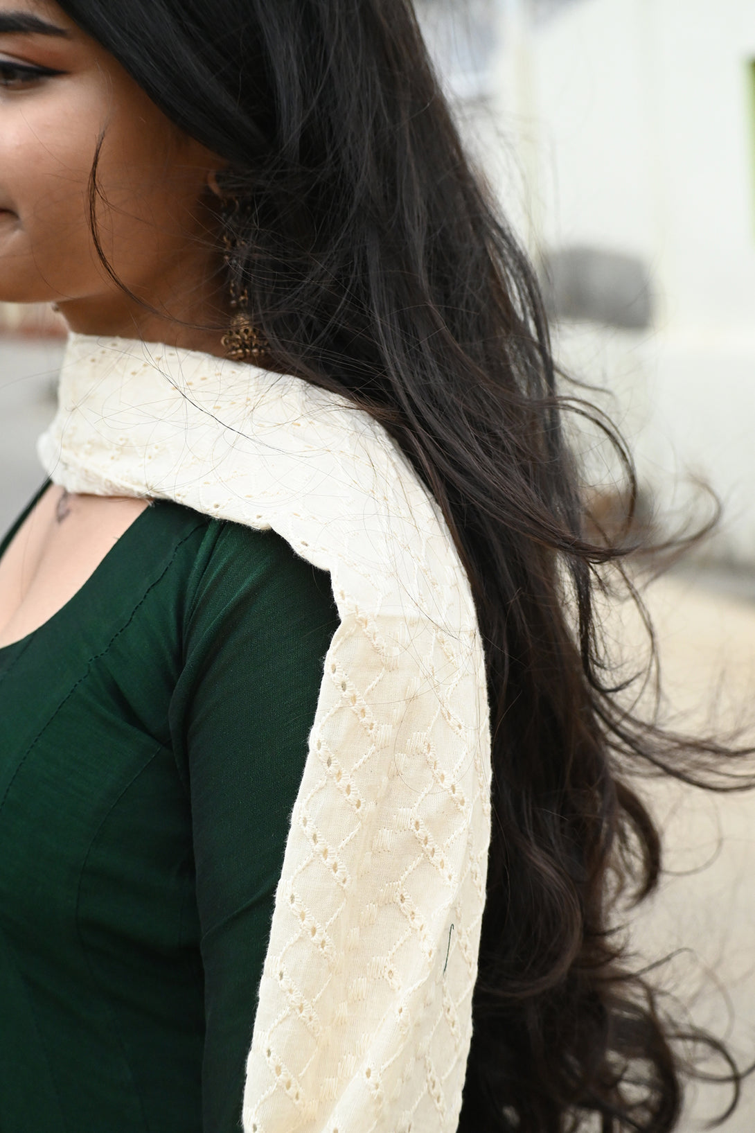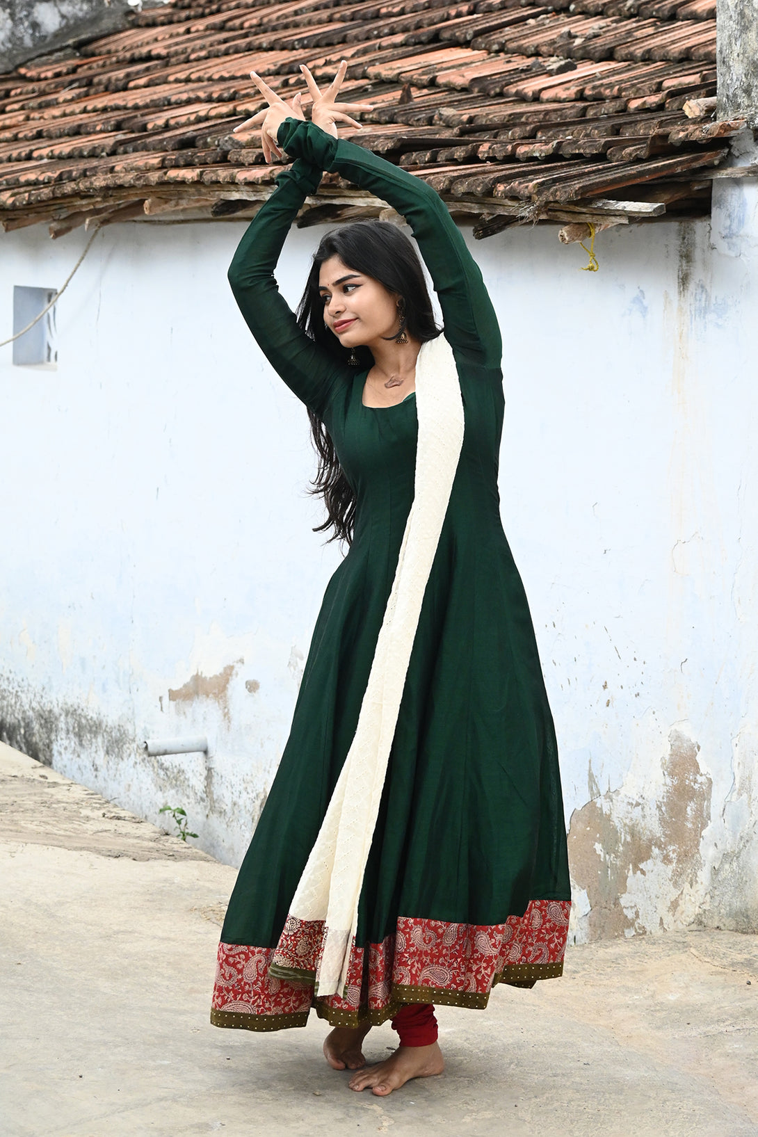 Green Anarkali with Half White Dupatta