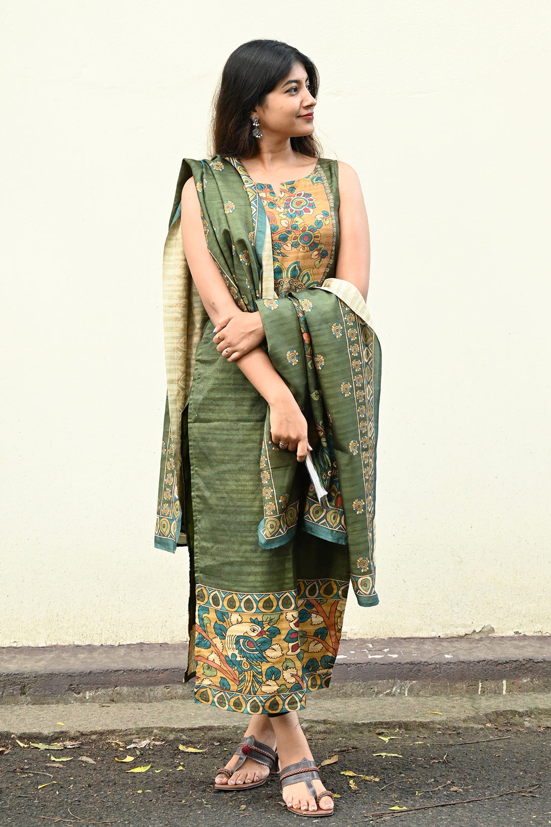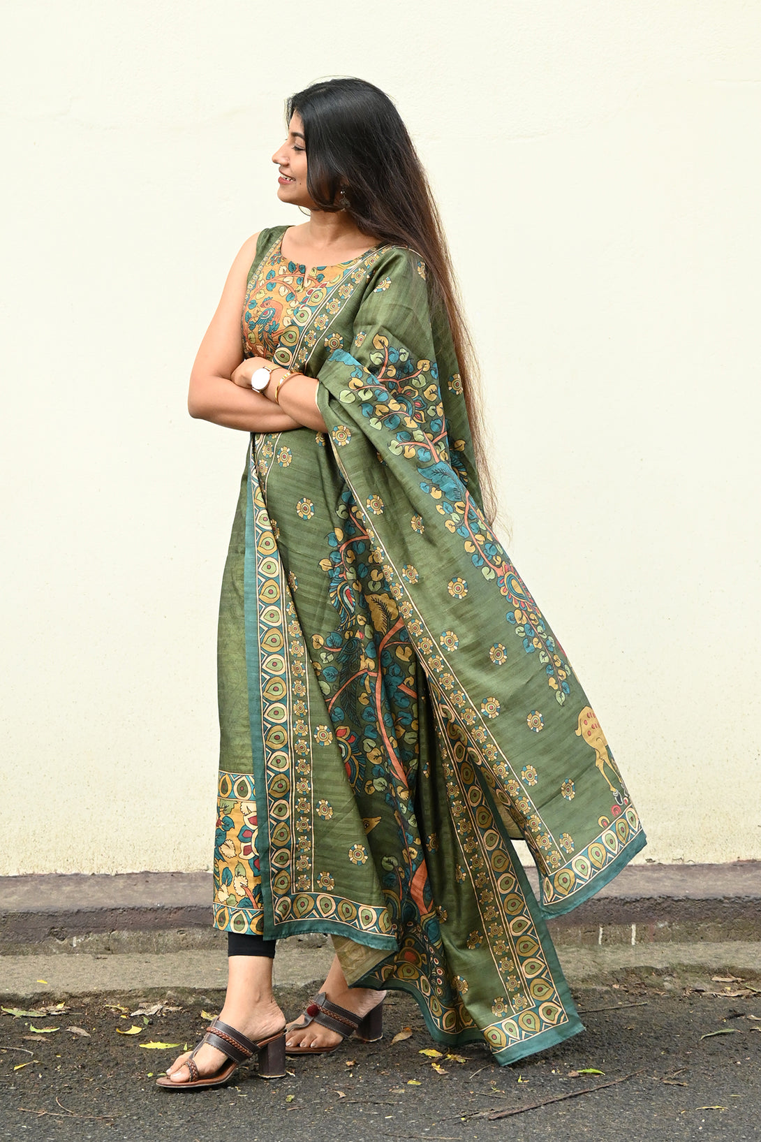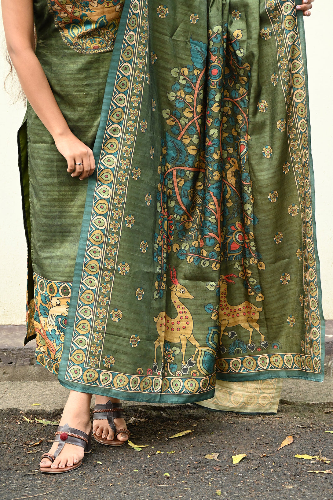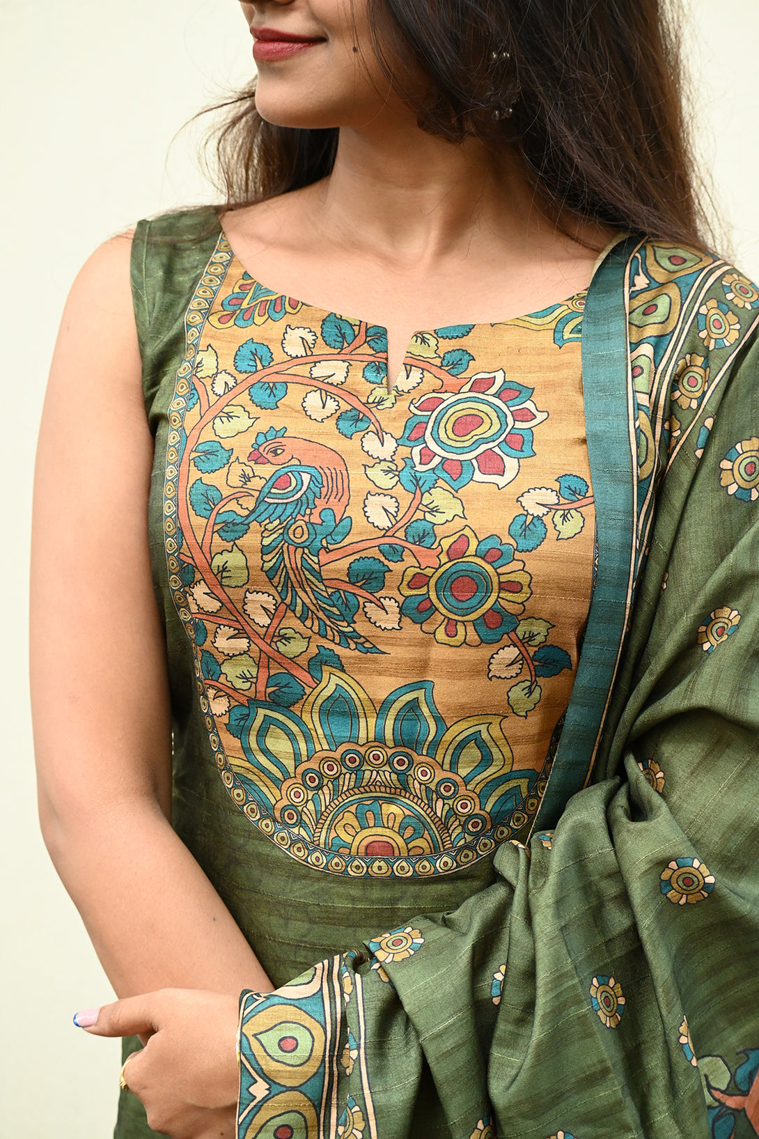 Green Kolam Silk Top and Dupatta Set