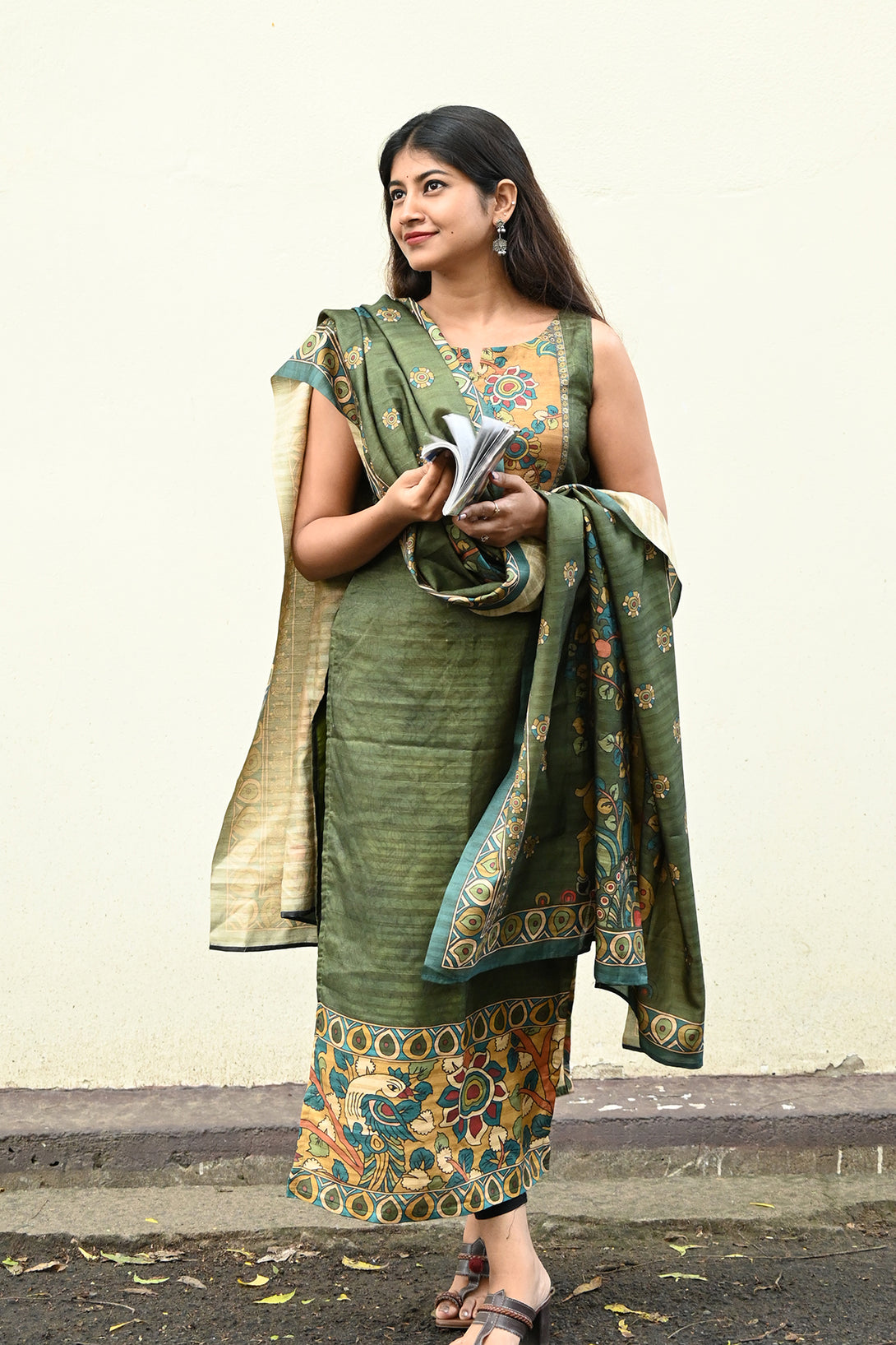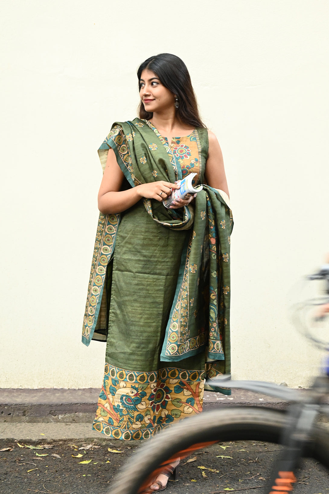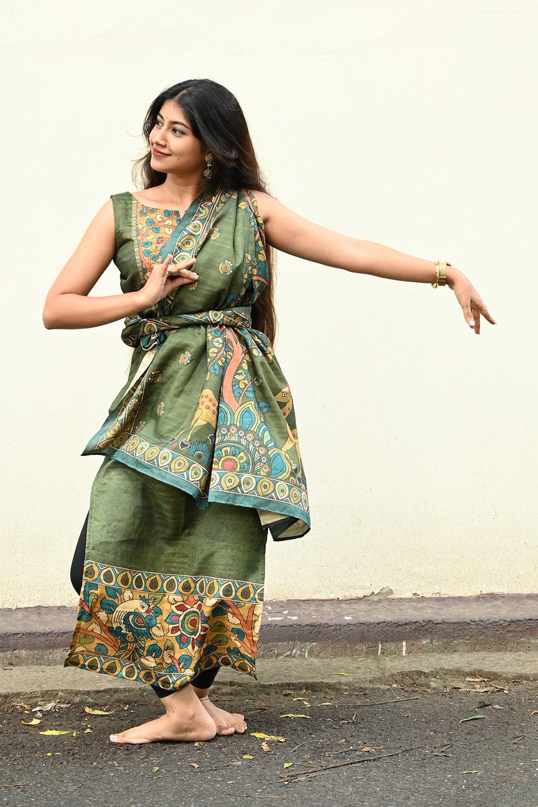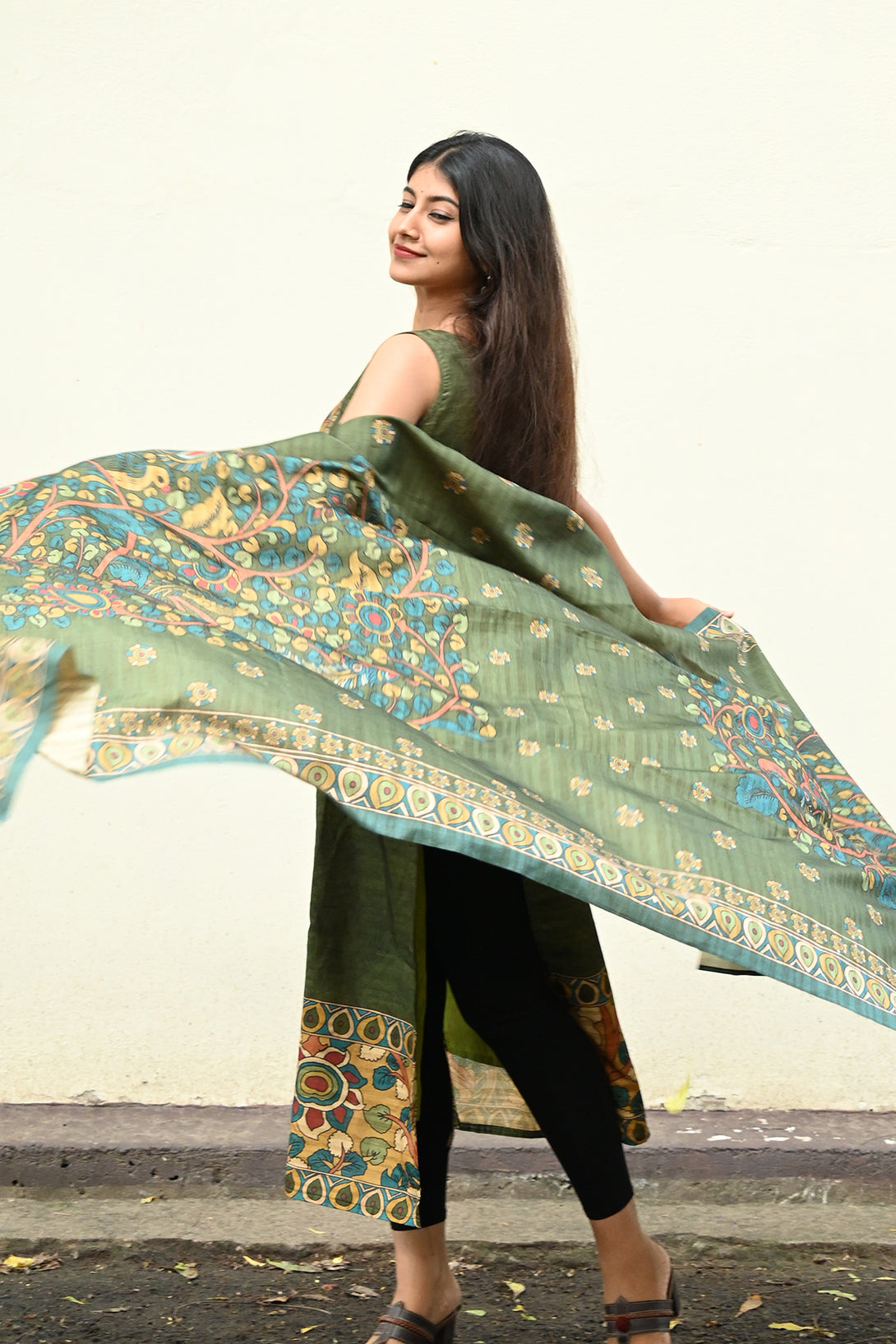 Green Kolam Silk Top and Dupatta Set