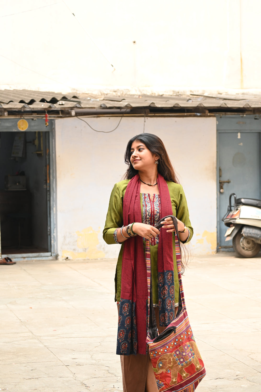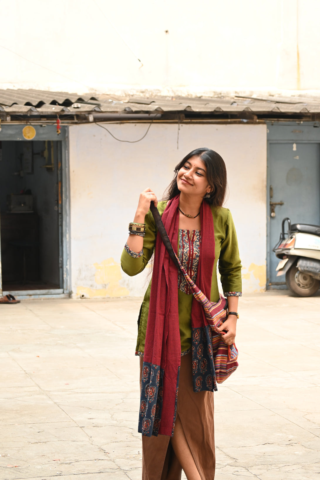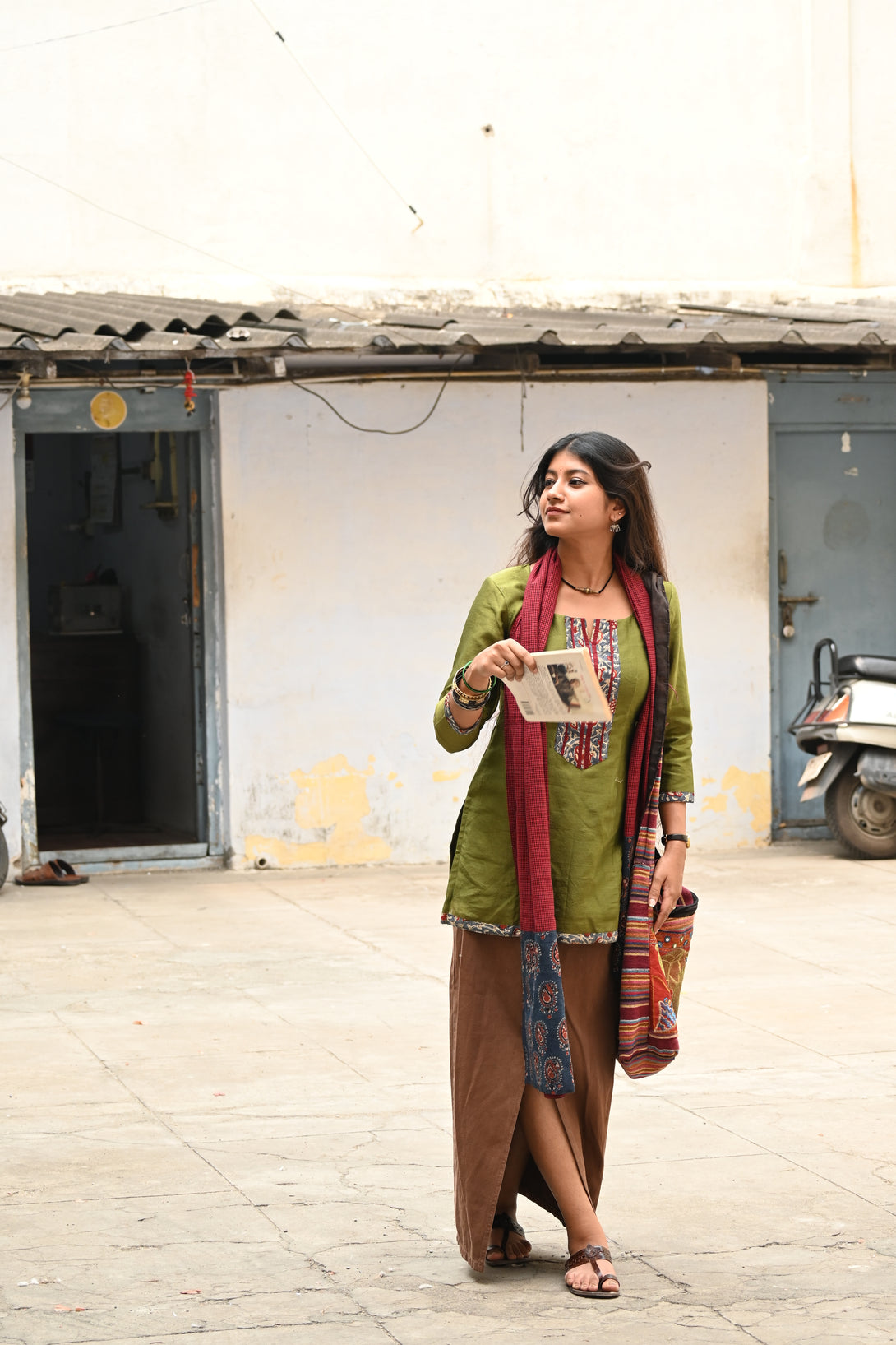 Green Pure Chanderi Short Kurta