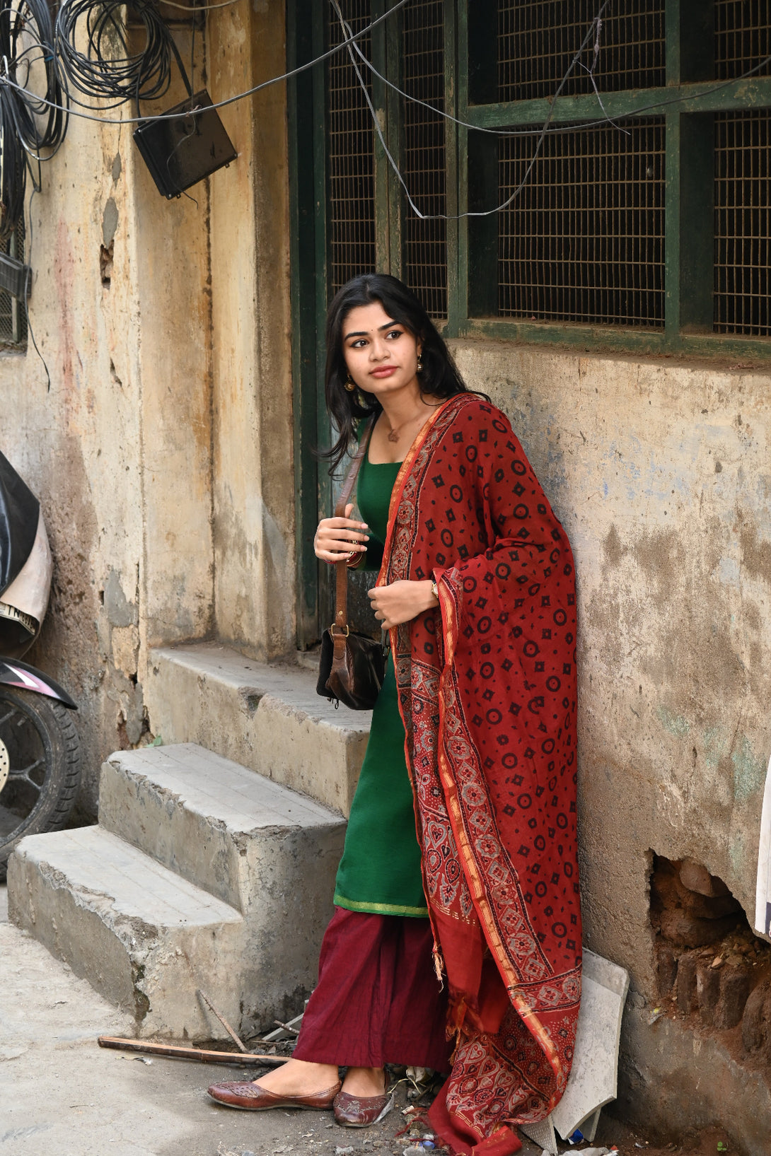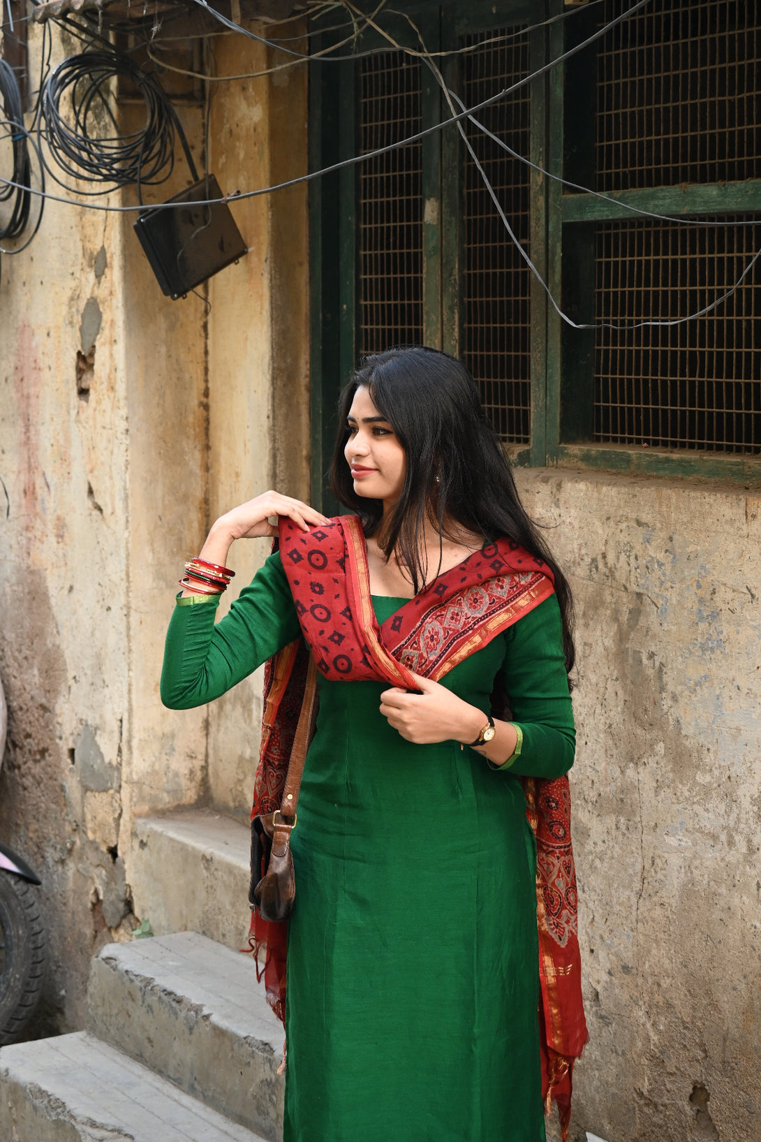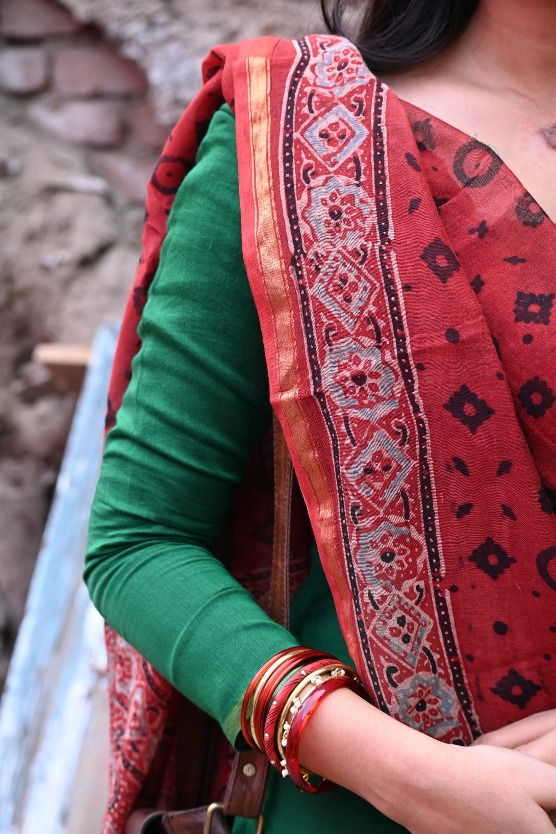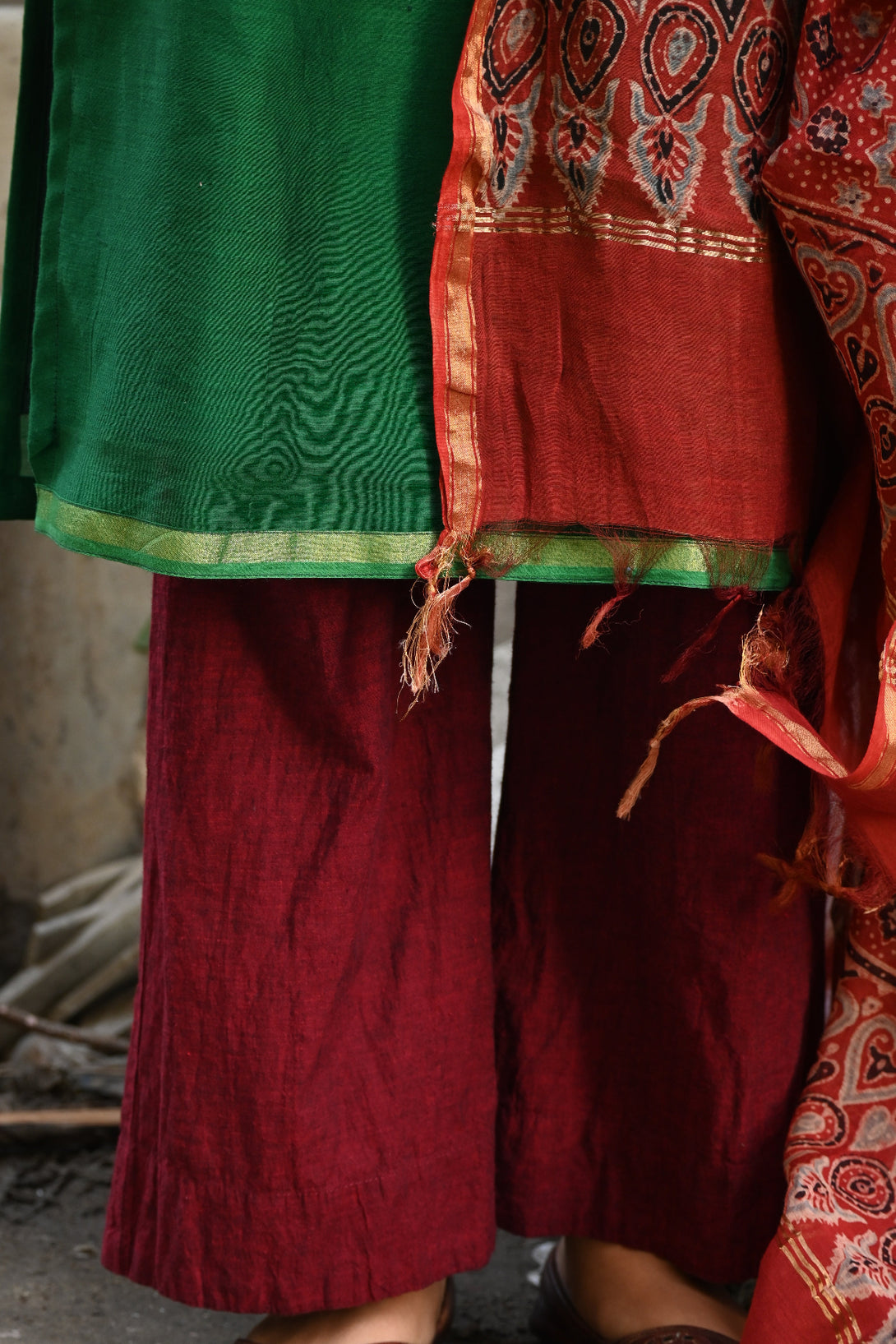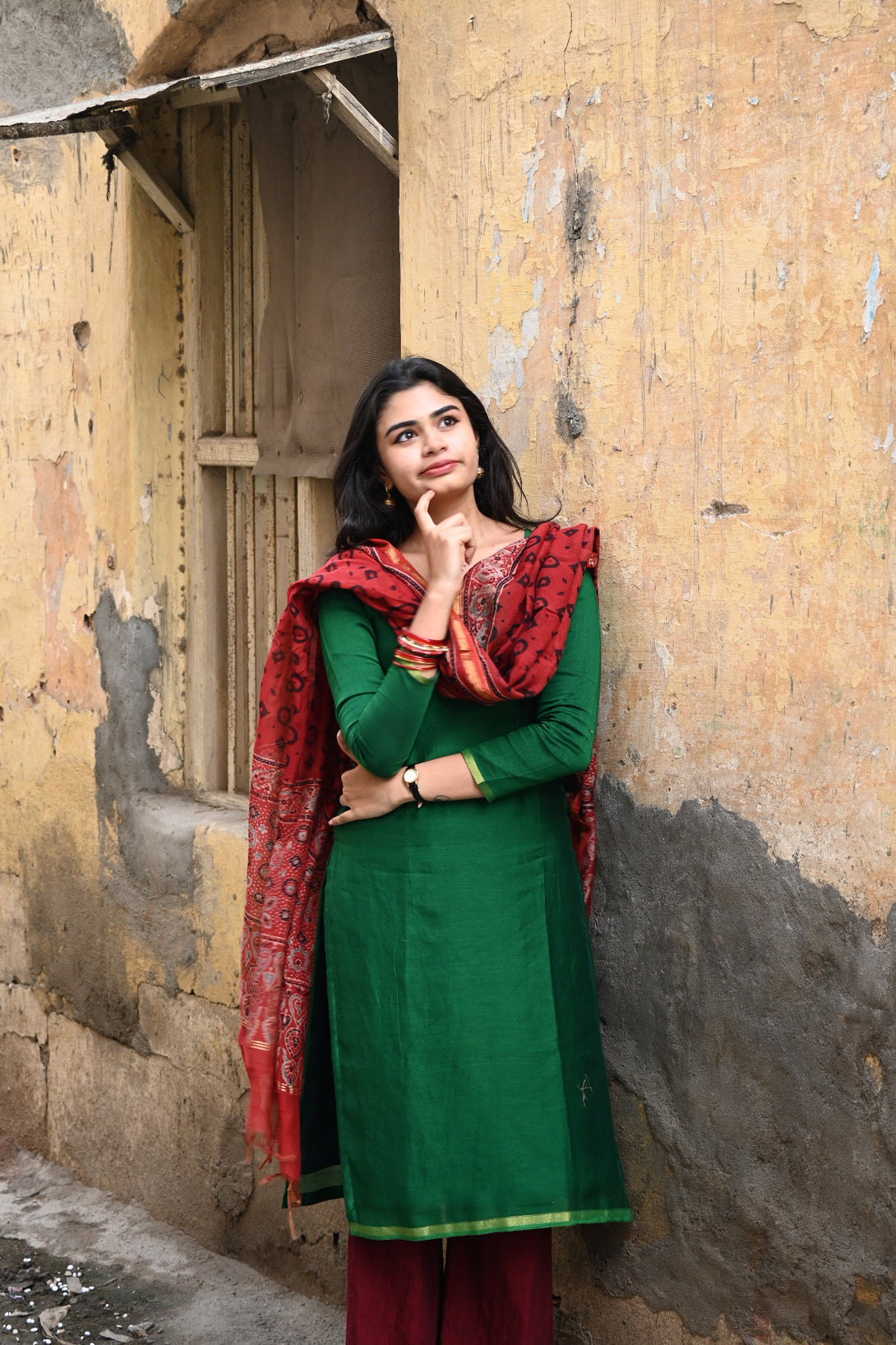 Green pure chanderi top and maheshwari cotton dupatta with bottom