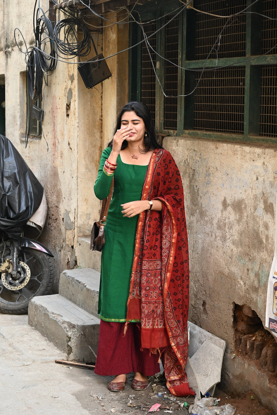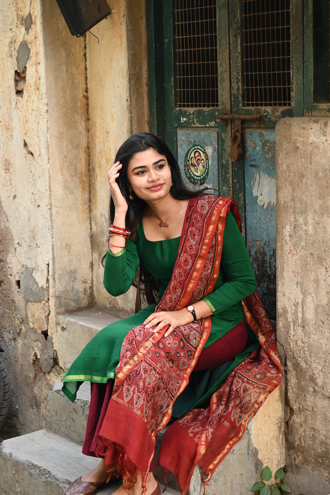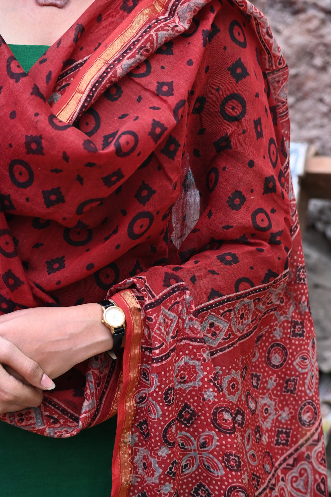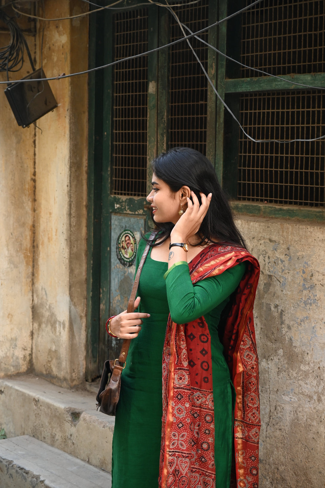 Green pure chanderi top and maheshwari cotton dupatta with bottom