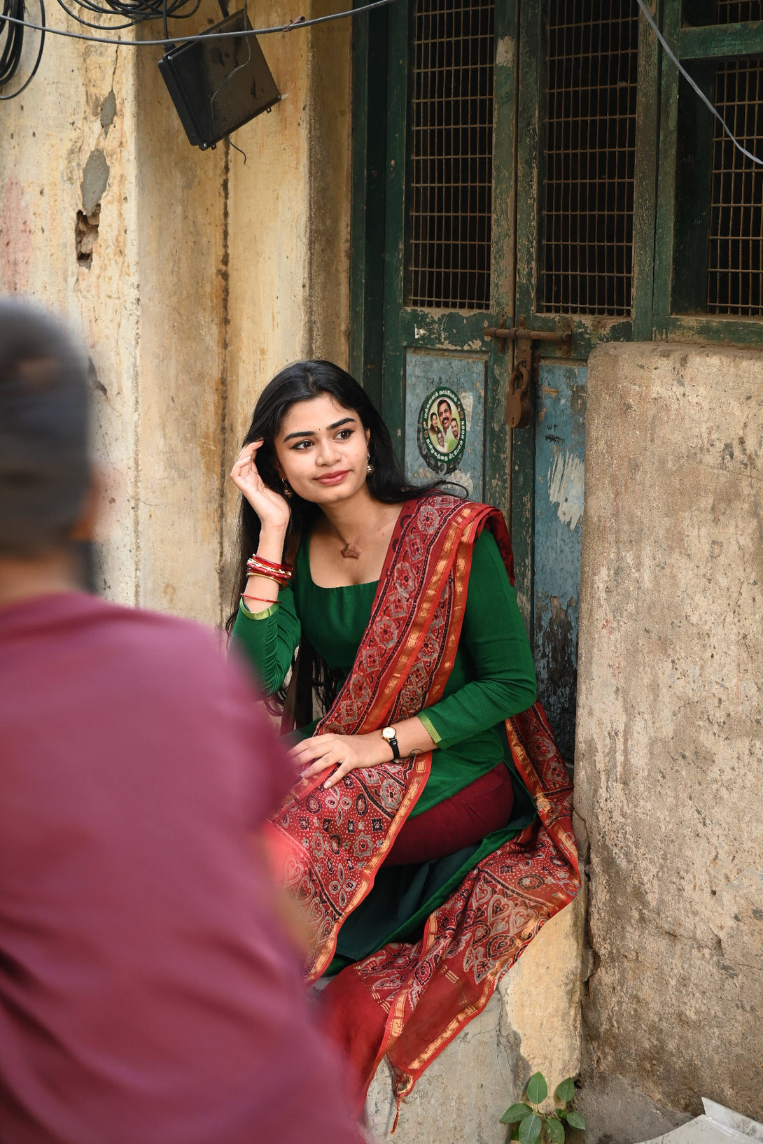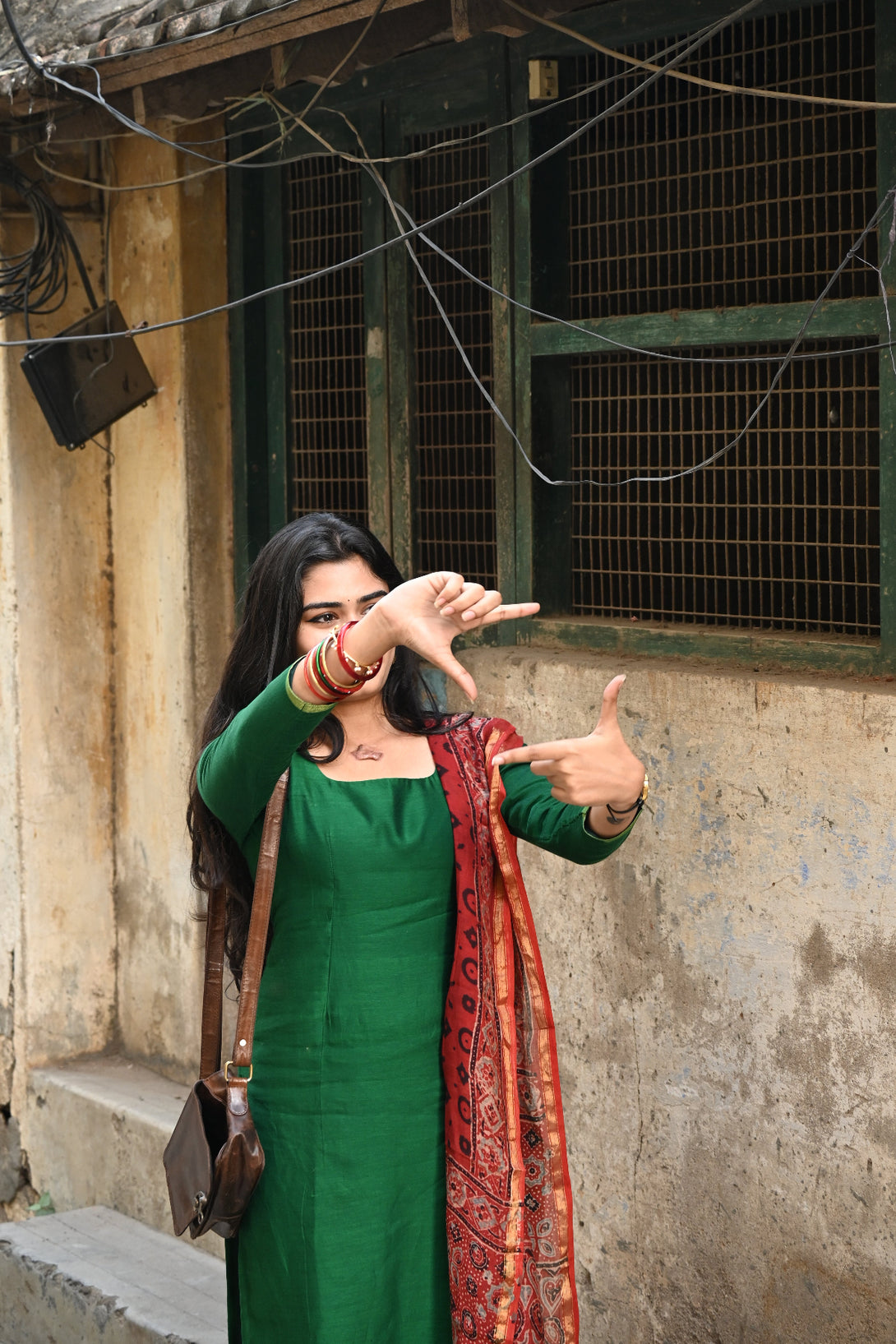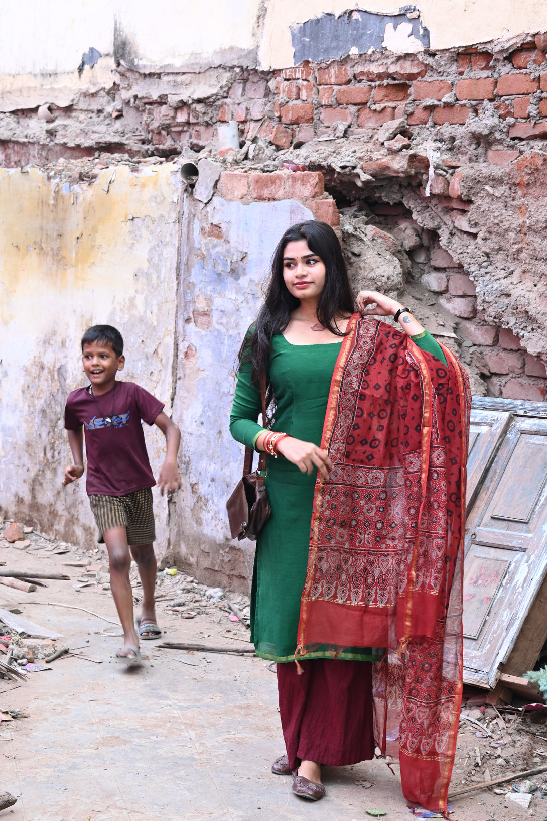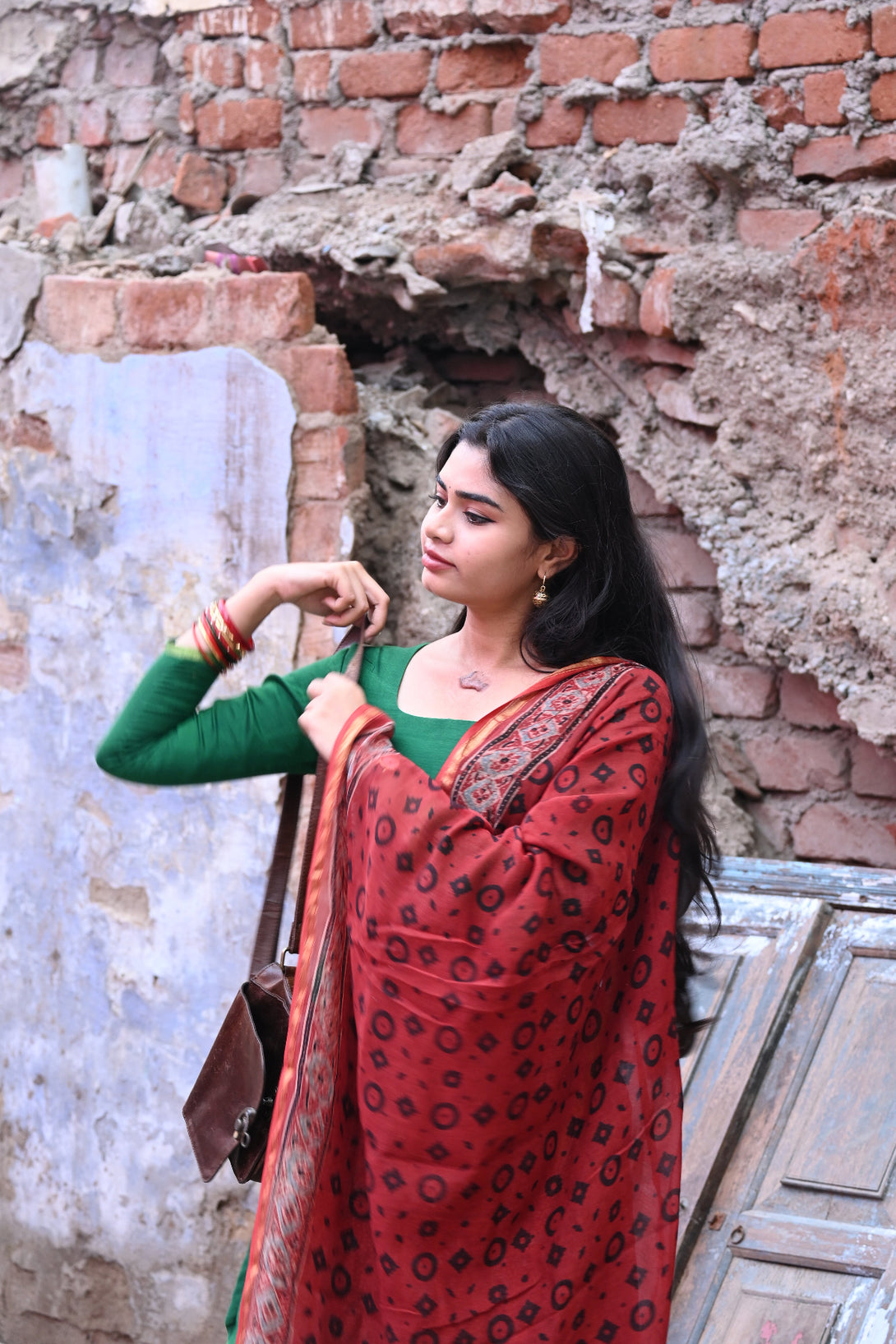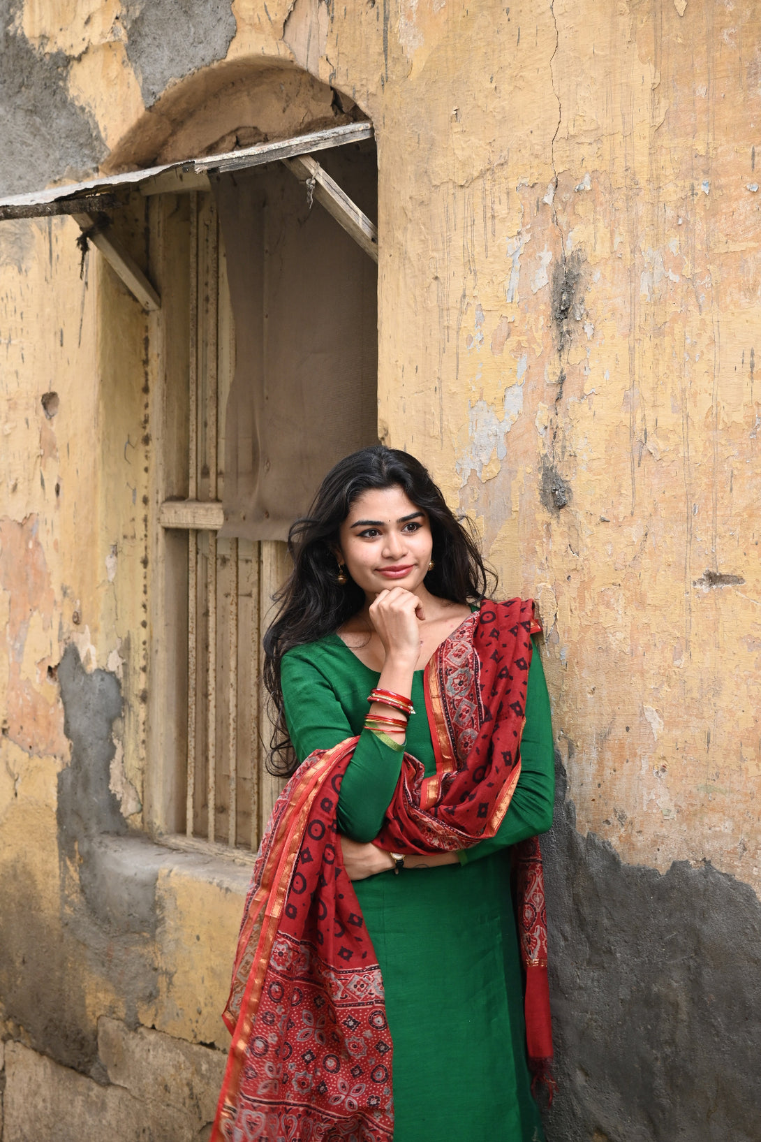 Green pure chanderi top and maheshwari cotton dupatta with bottom