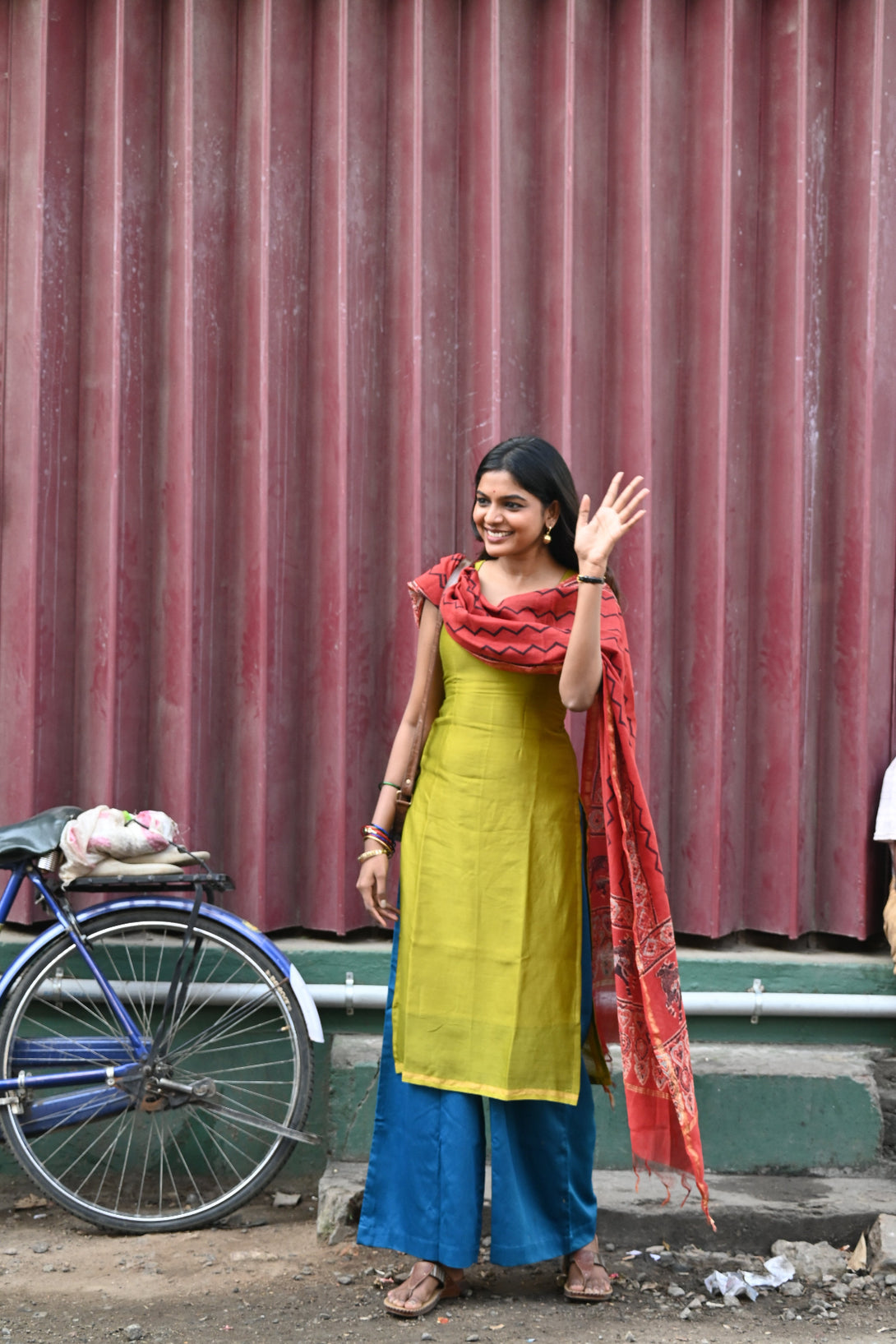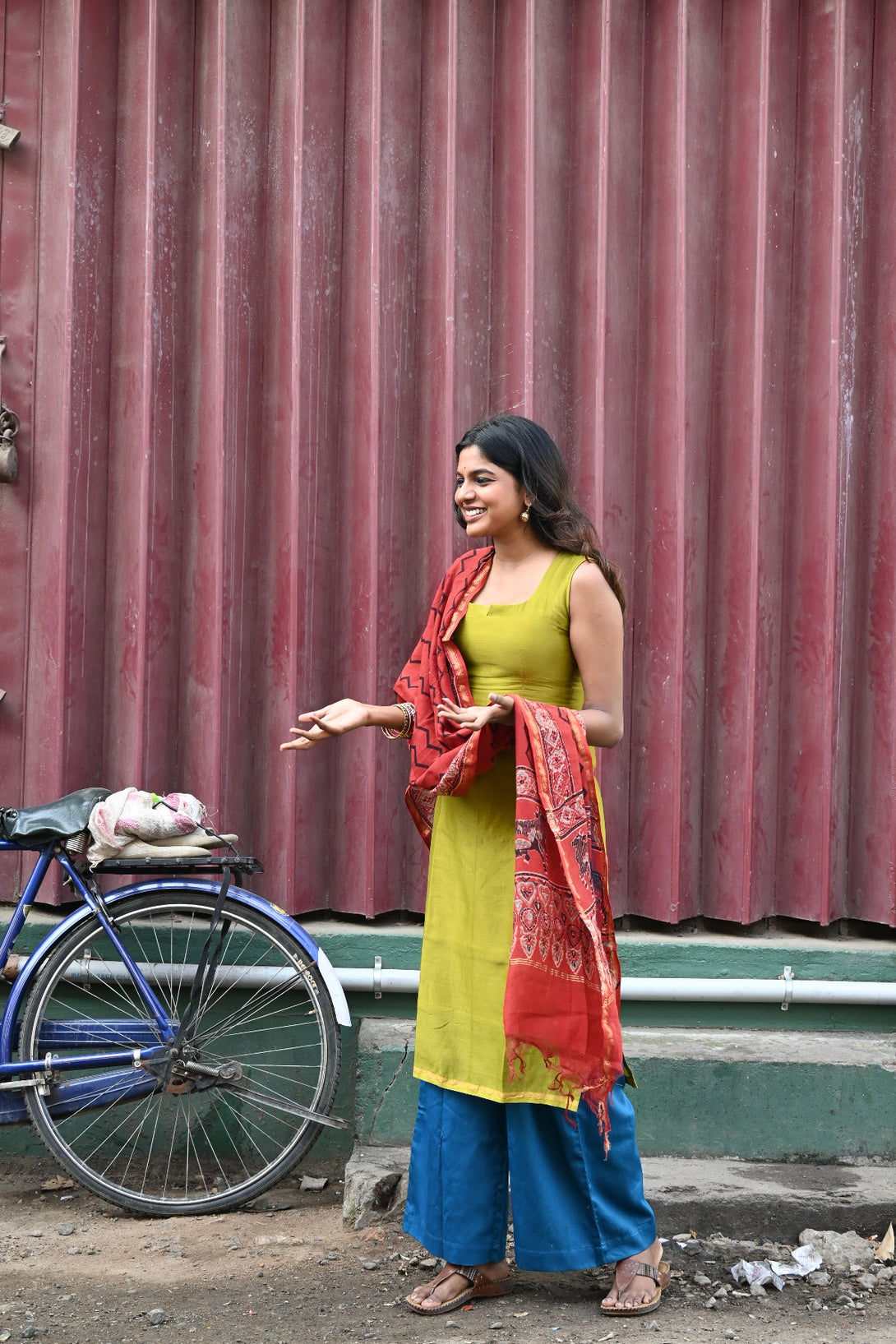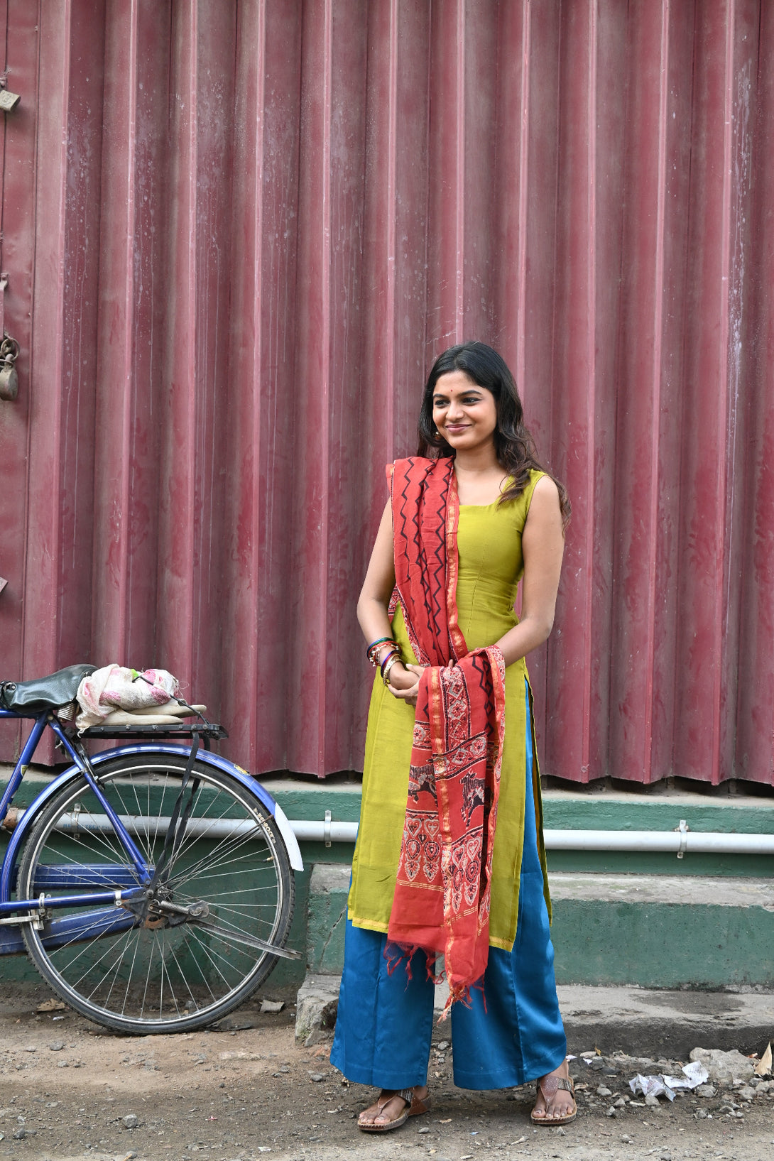 Green Pure Chanderi Top and Maheshwari Dupatta with Bottom
