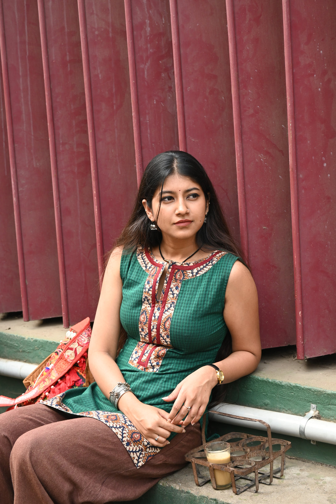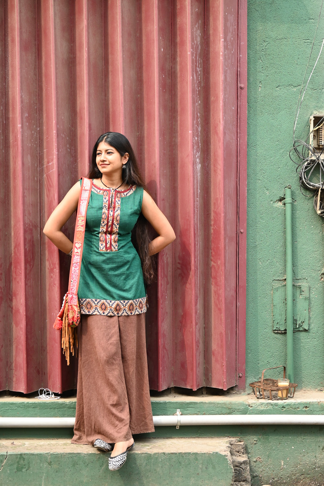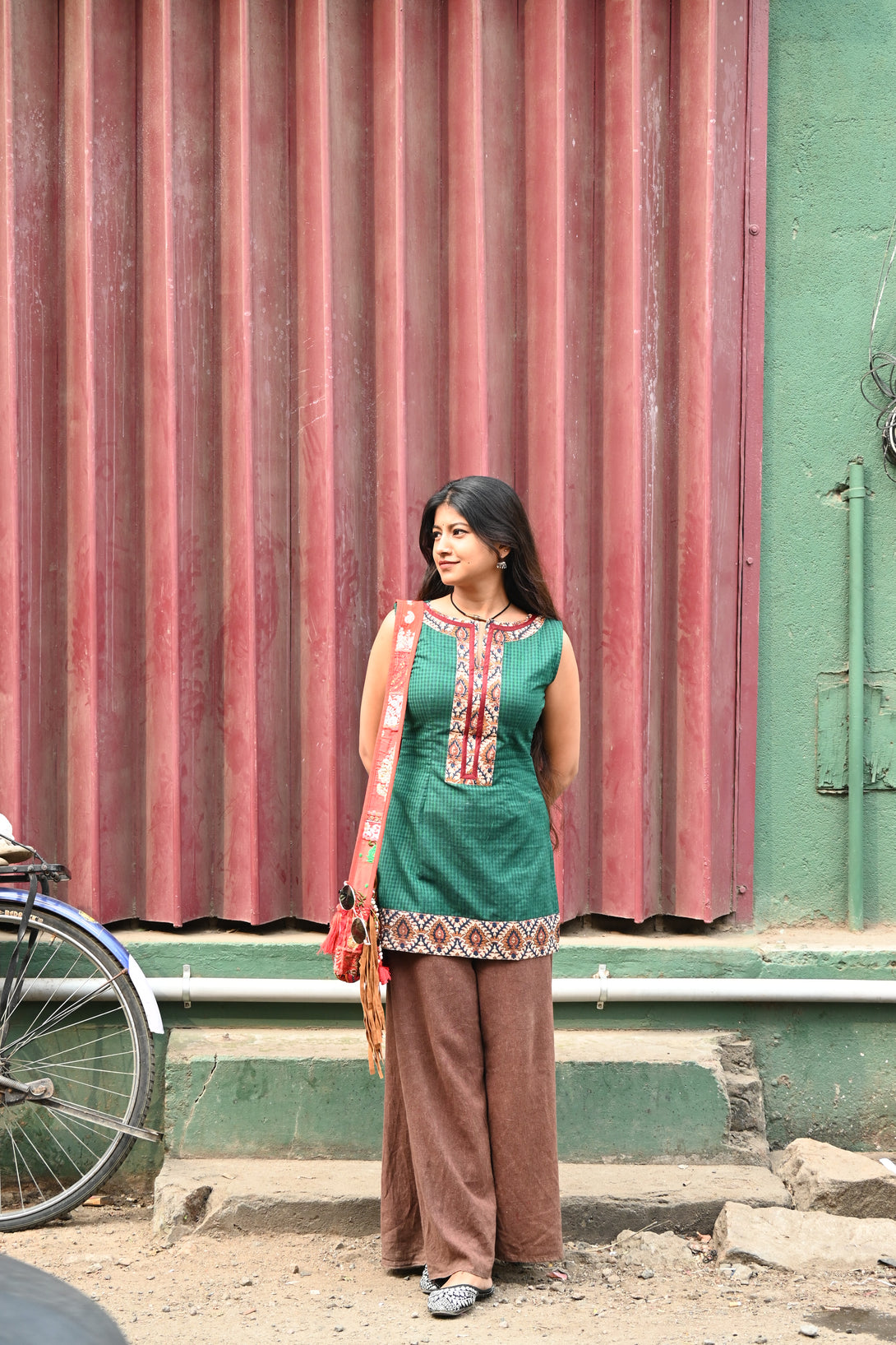Green pure handloom cotton short kurta