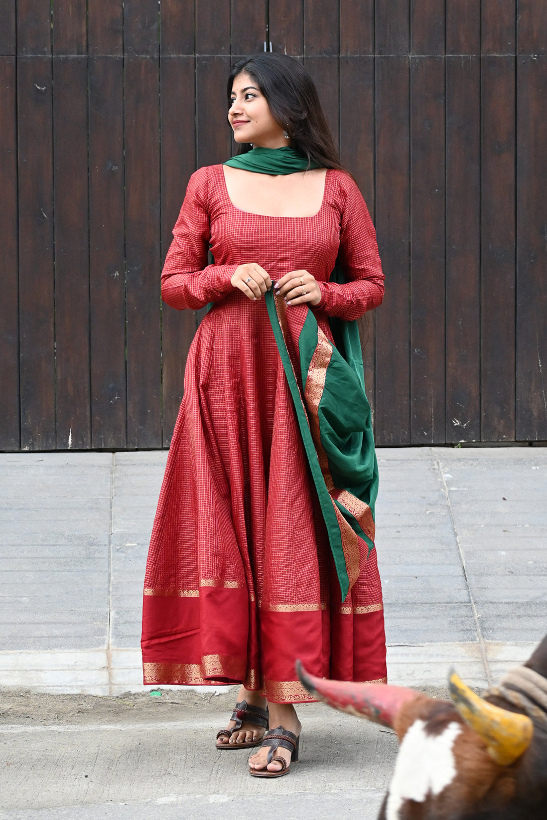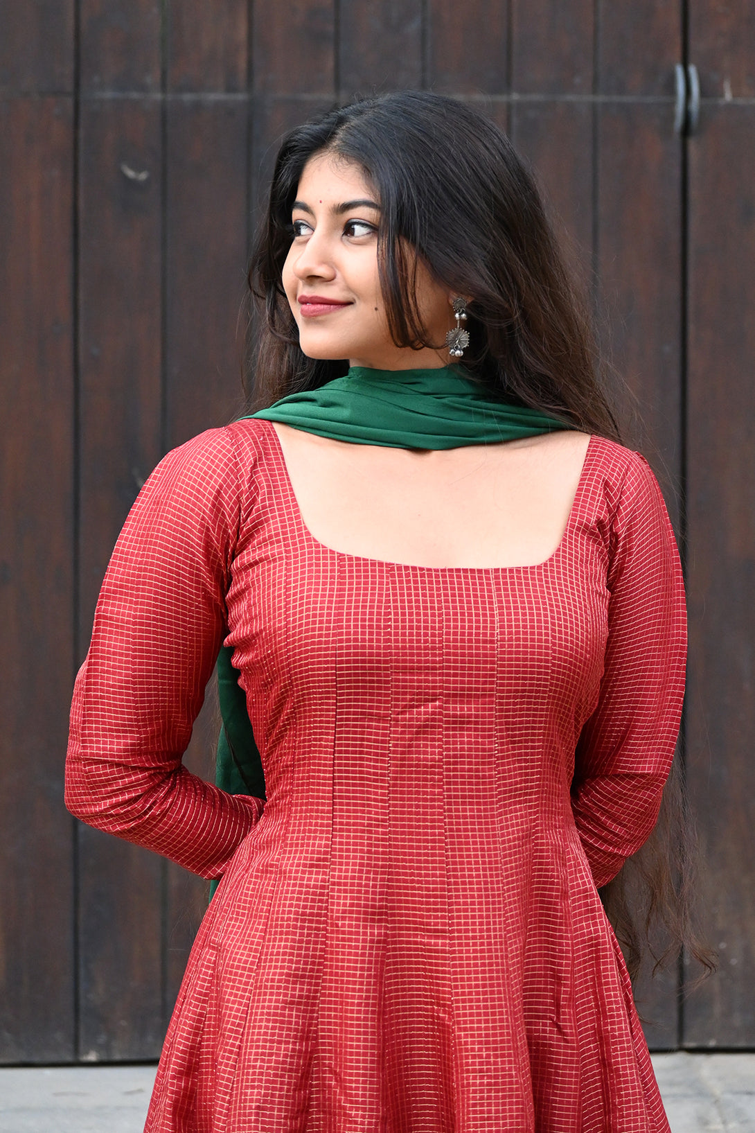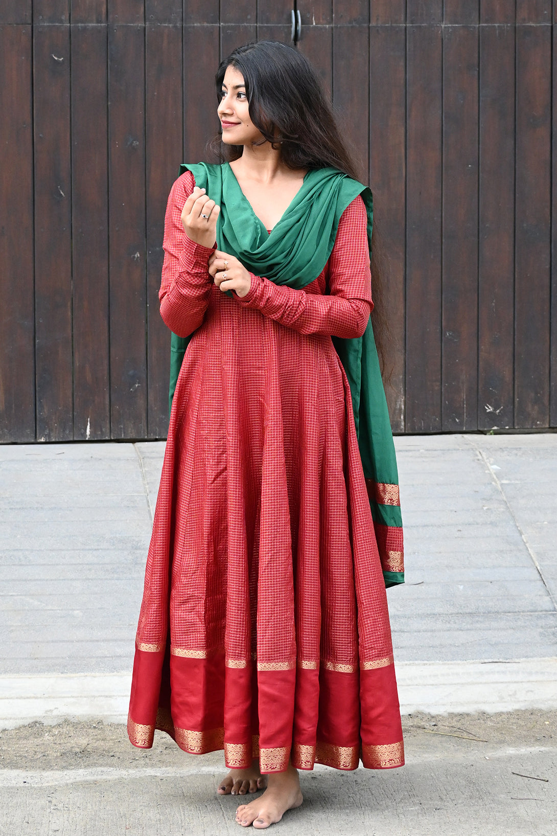 Maroon Anarkali with Georgette Green Dupatta