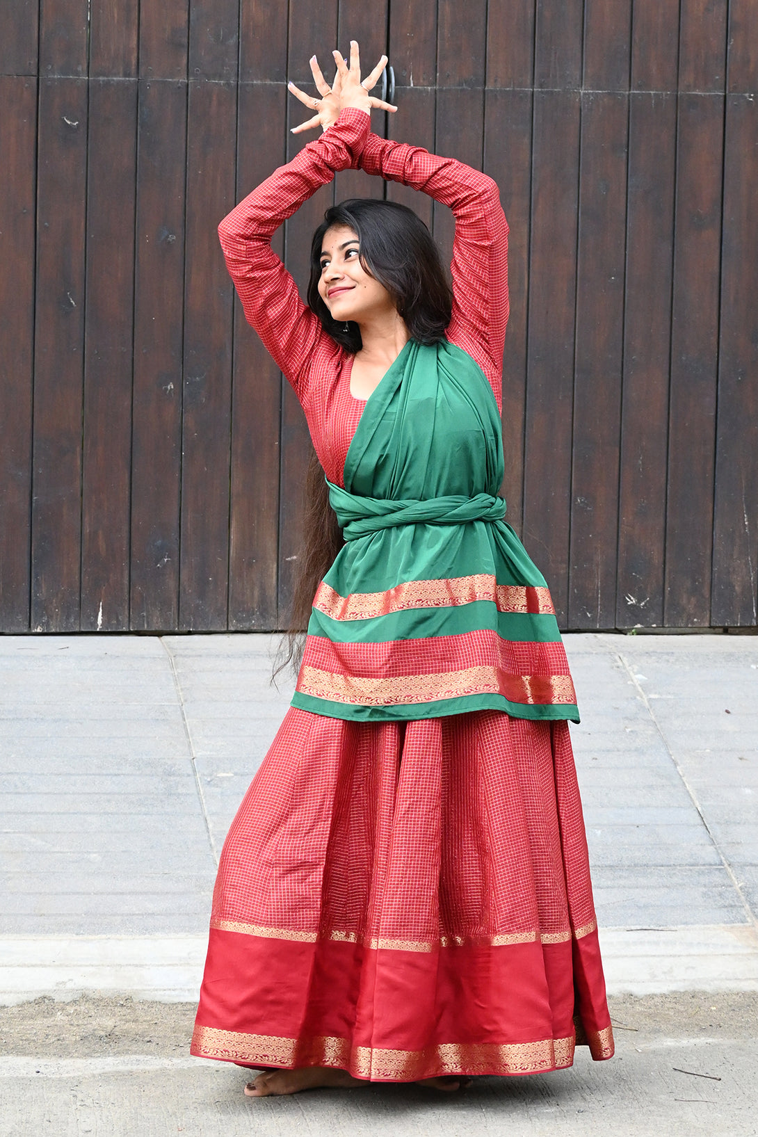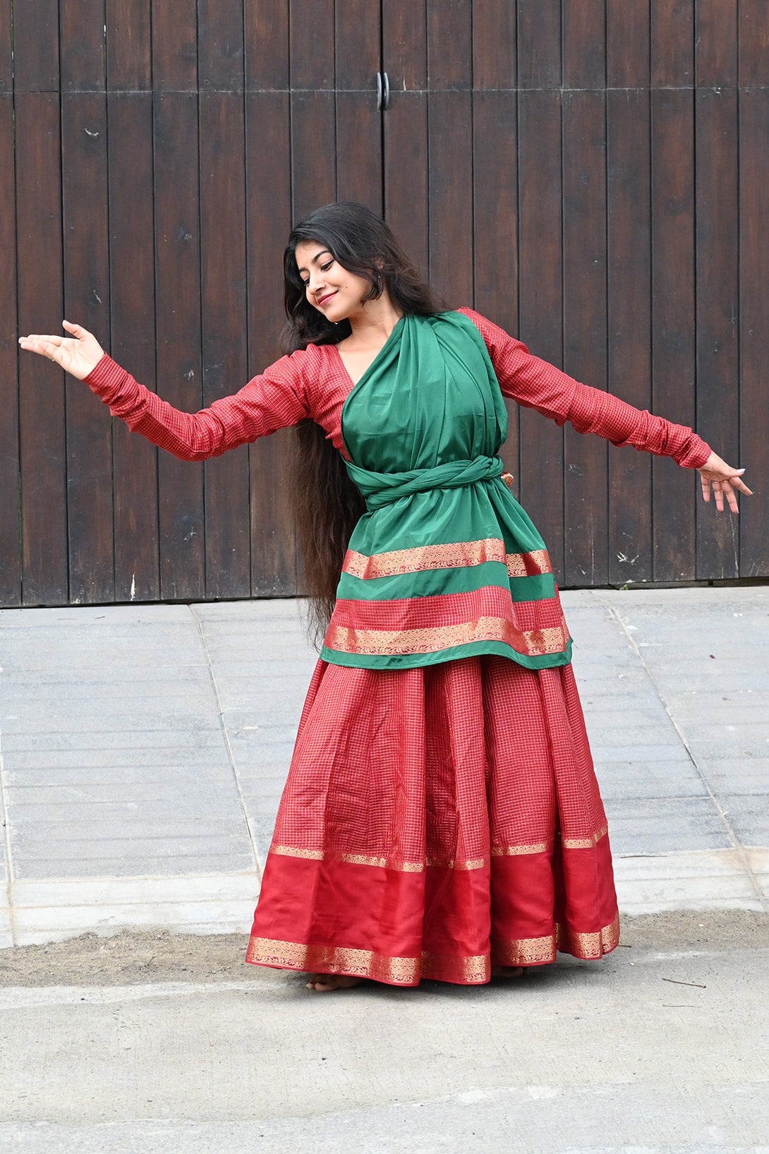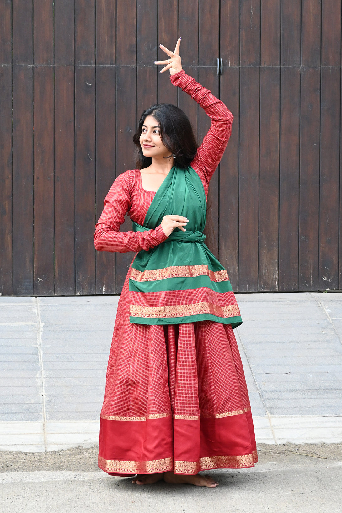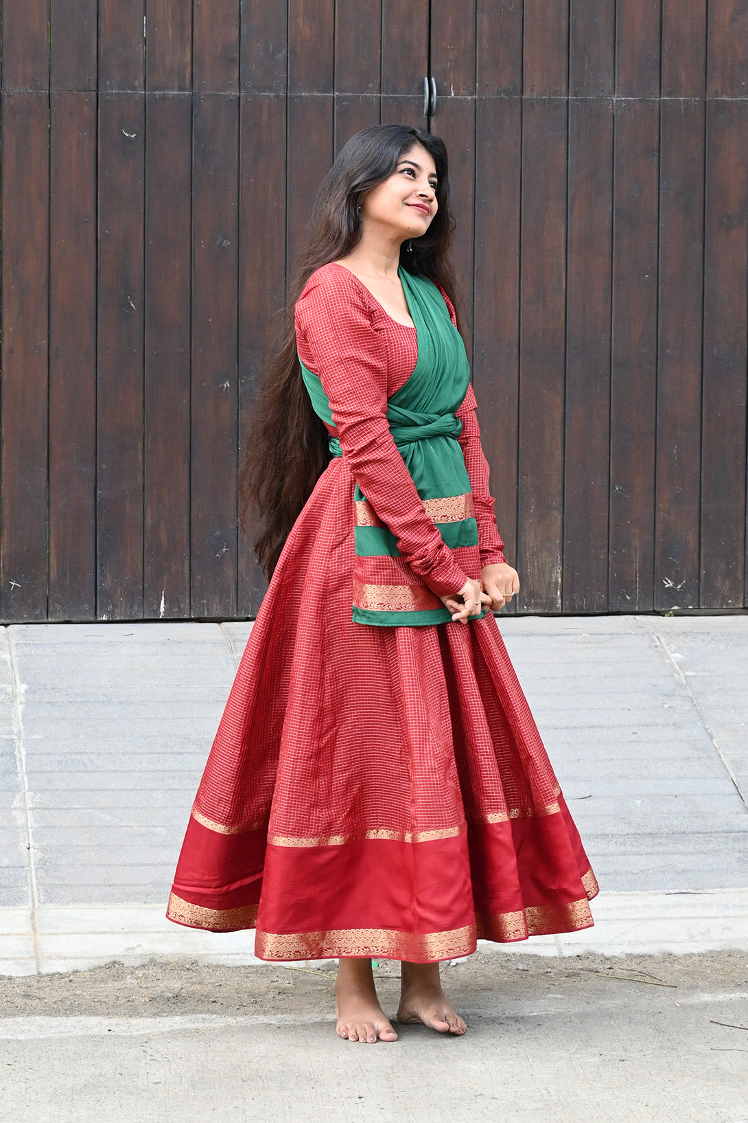 Maroon Anarkali with Georgette Green Dupatta