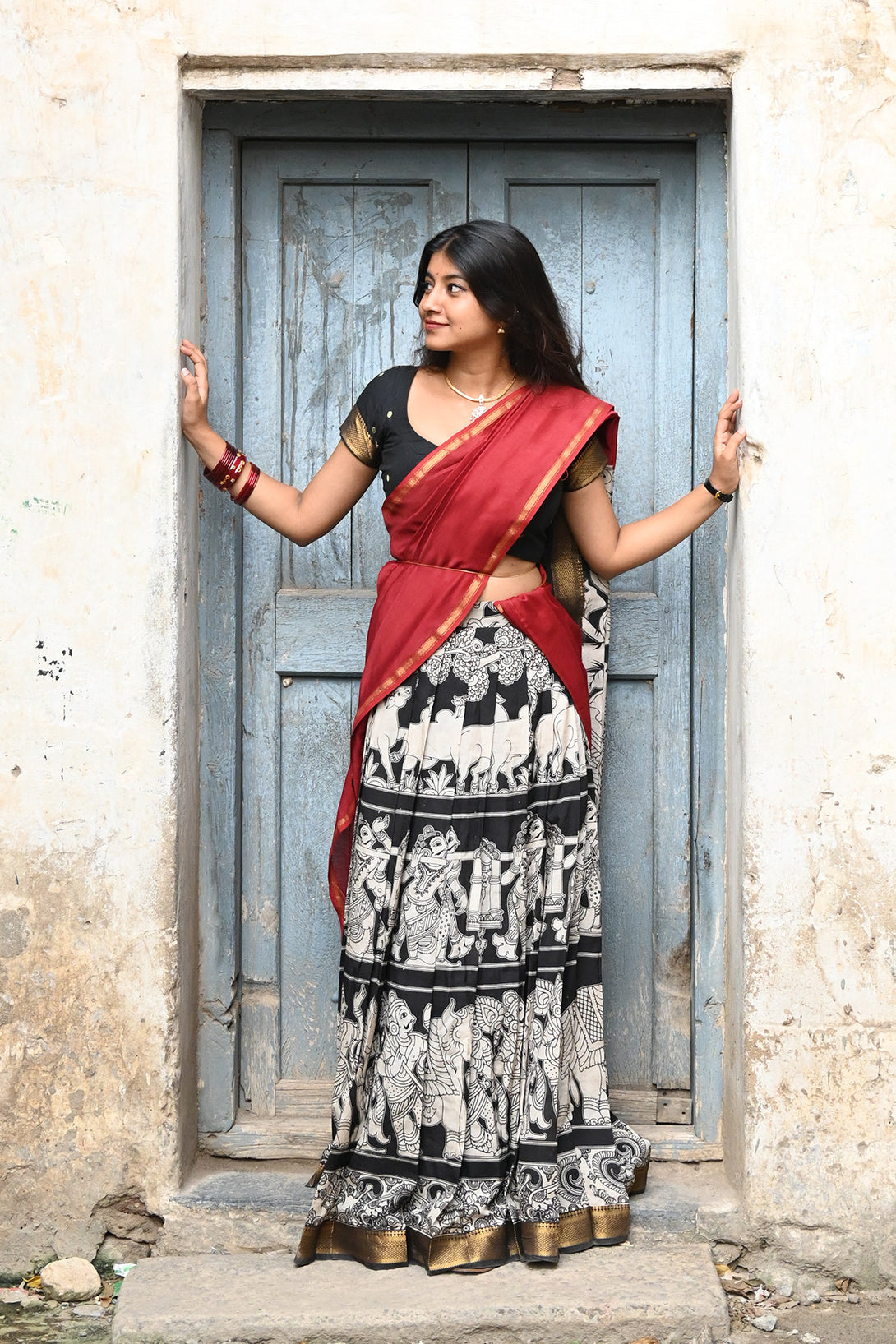 Fabric: Pure Chanderi (Dupatta) and Pure Kalamkari (Skirt)