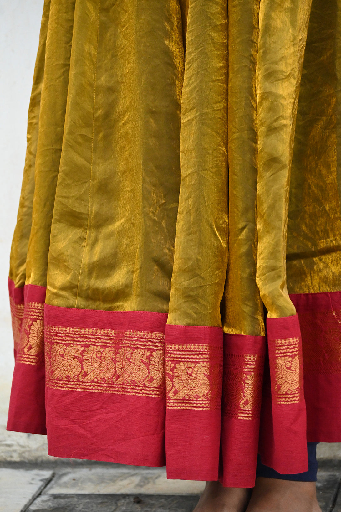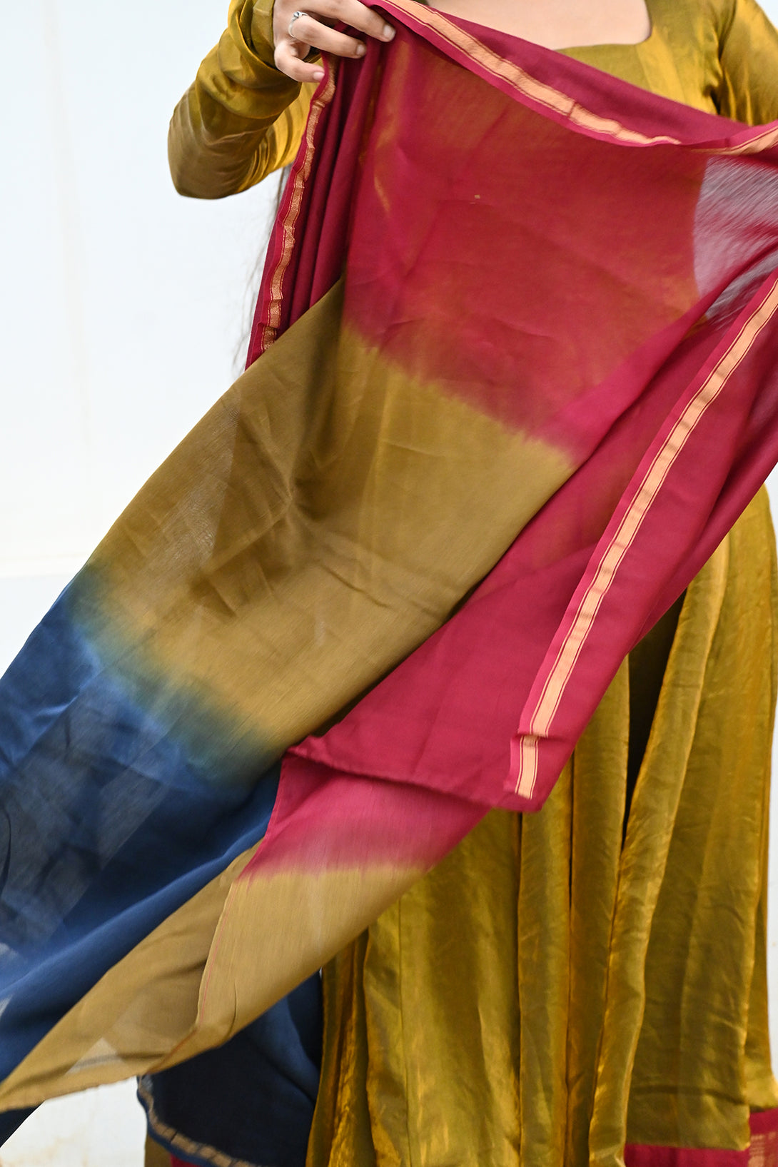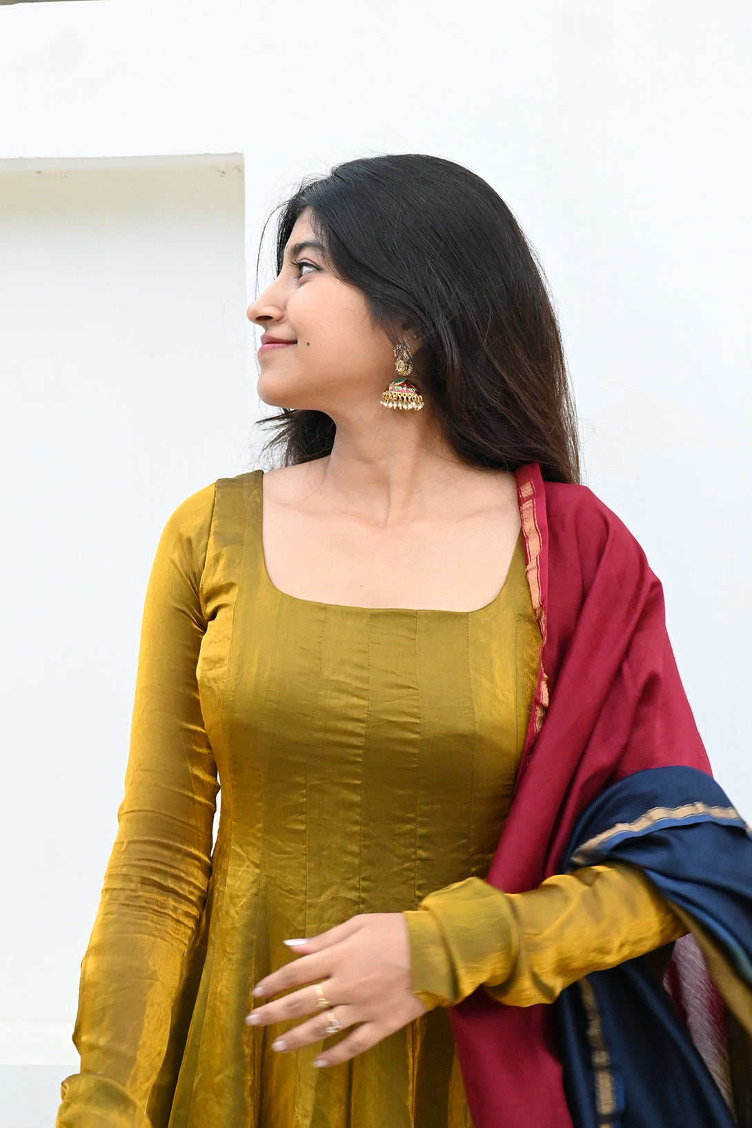 Mehendi Gold Anarkali with Chettinadu Border and Pure Chanderi Hand Dyed Dupatta