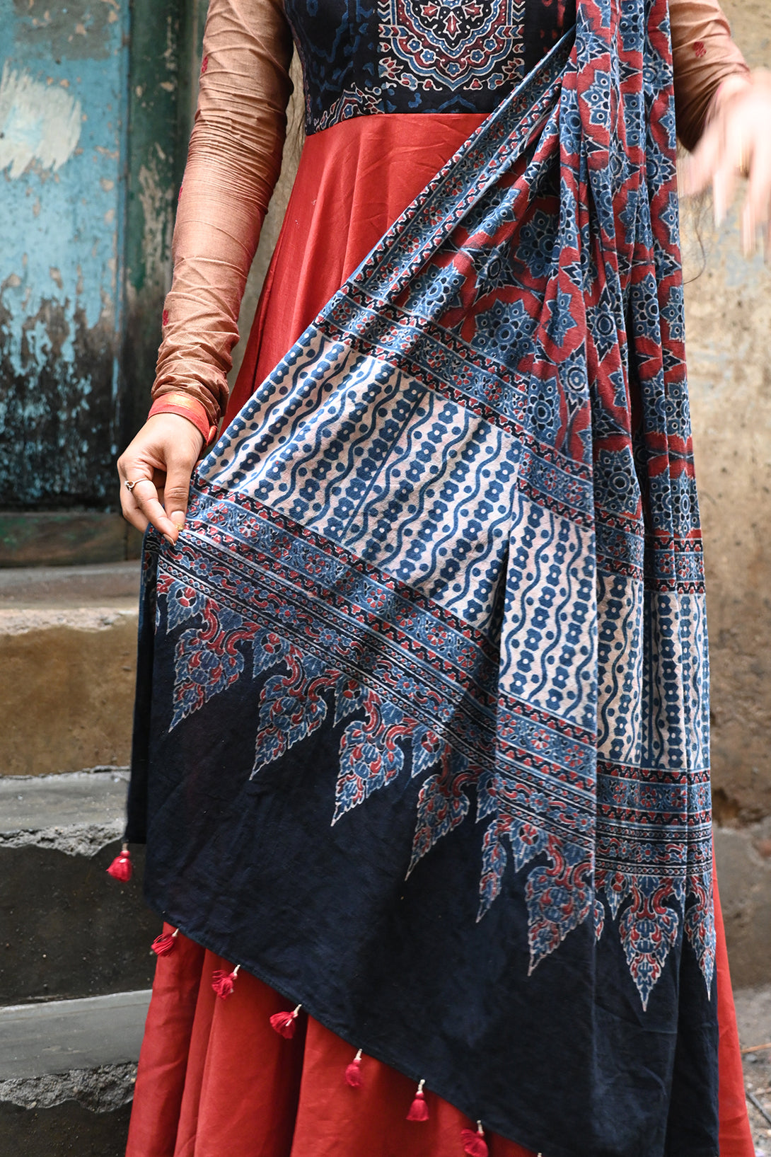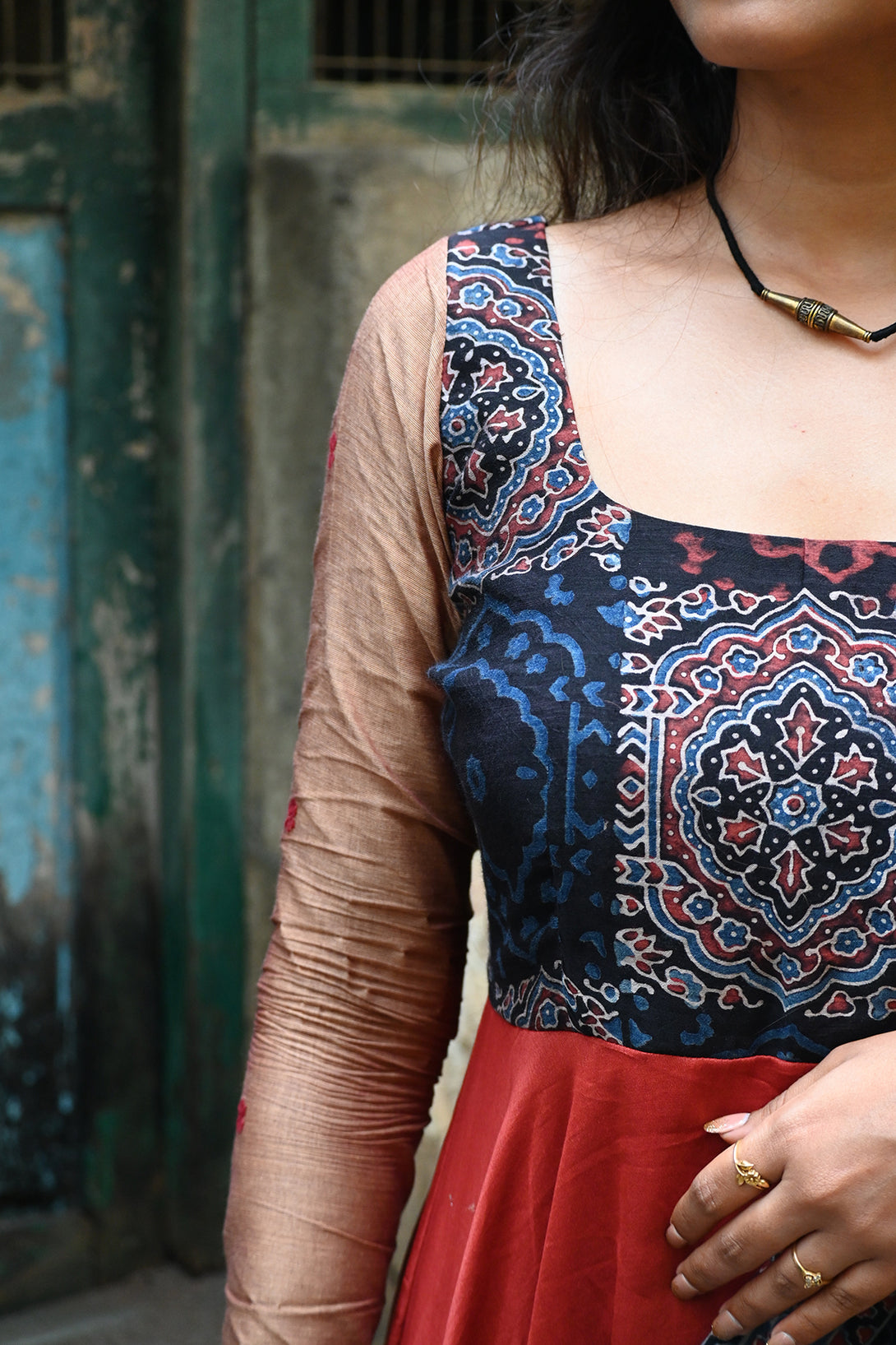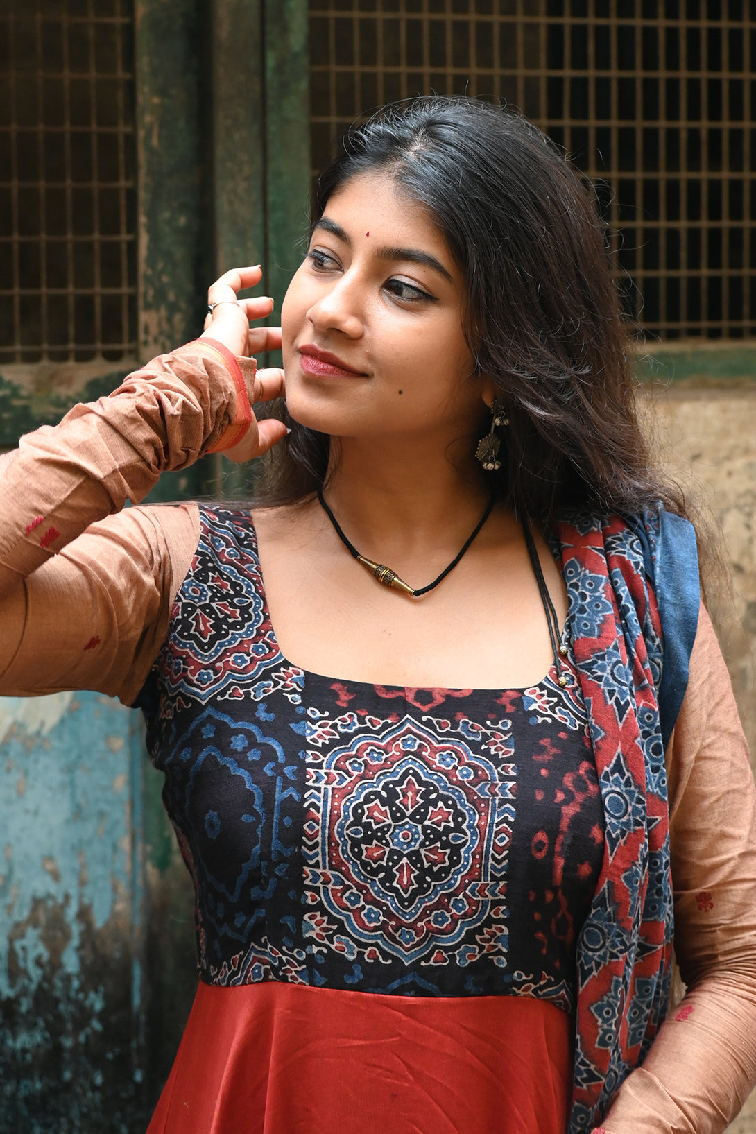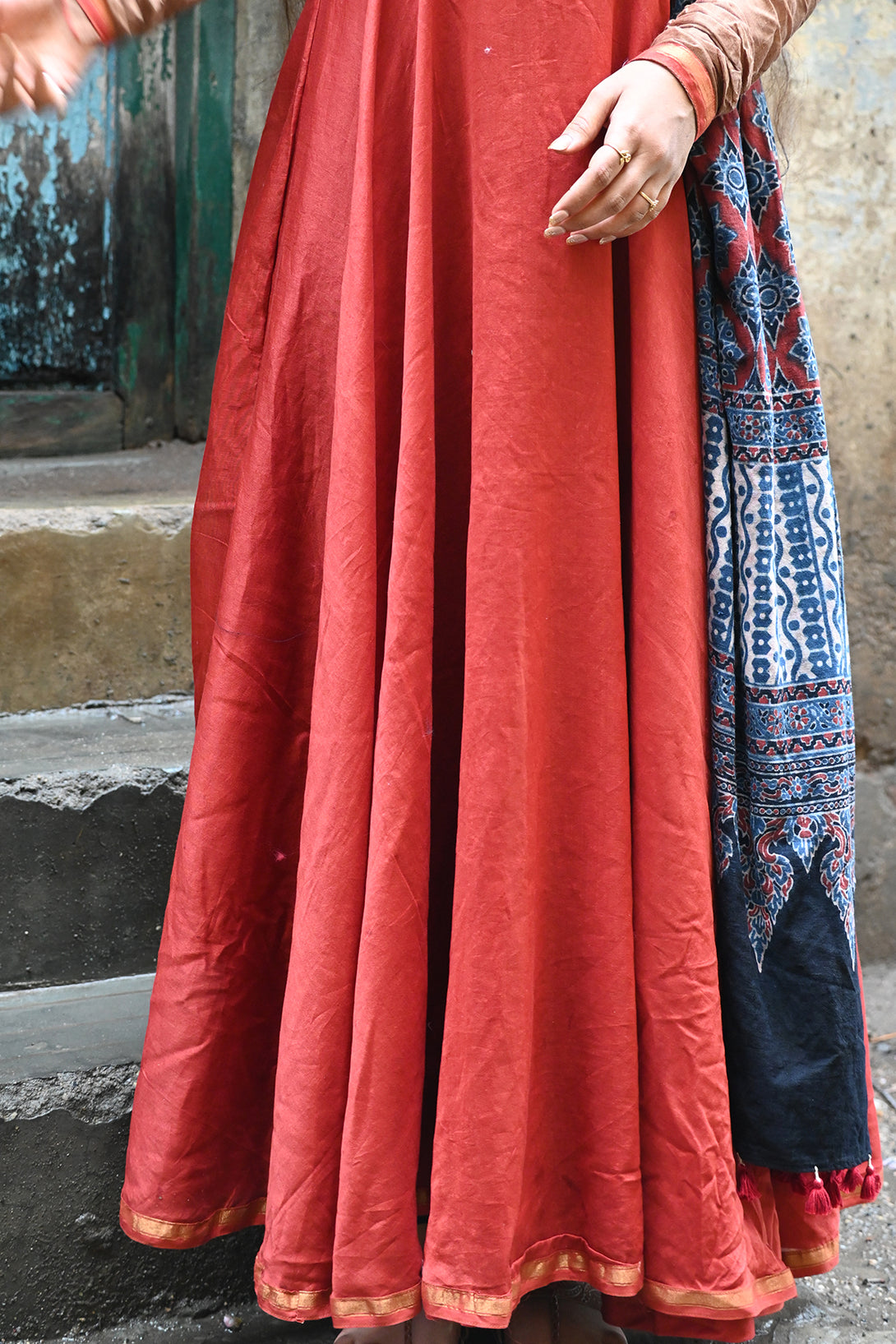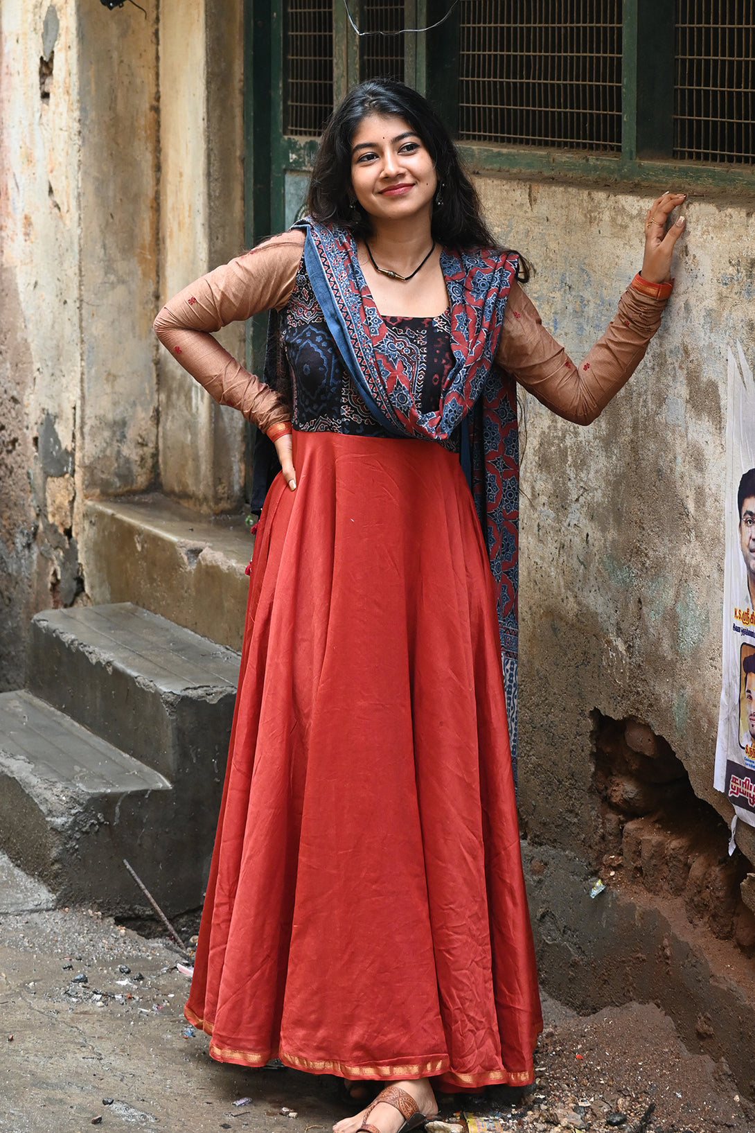 Rust Chanderi Anarkali with Kalamkari Dupatta
